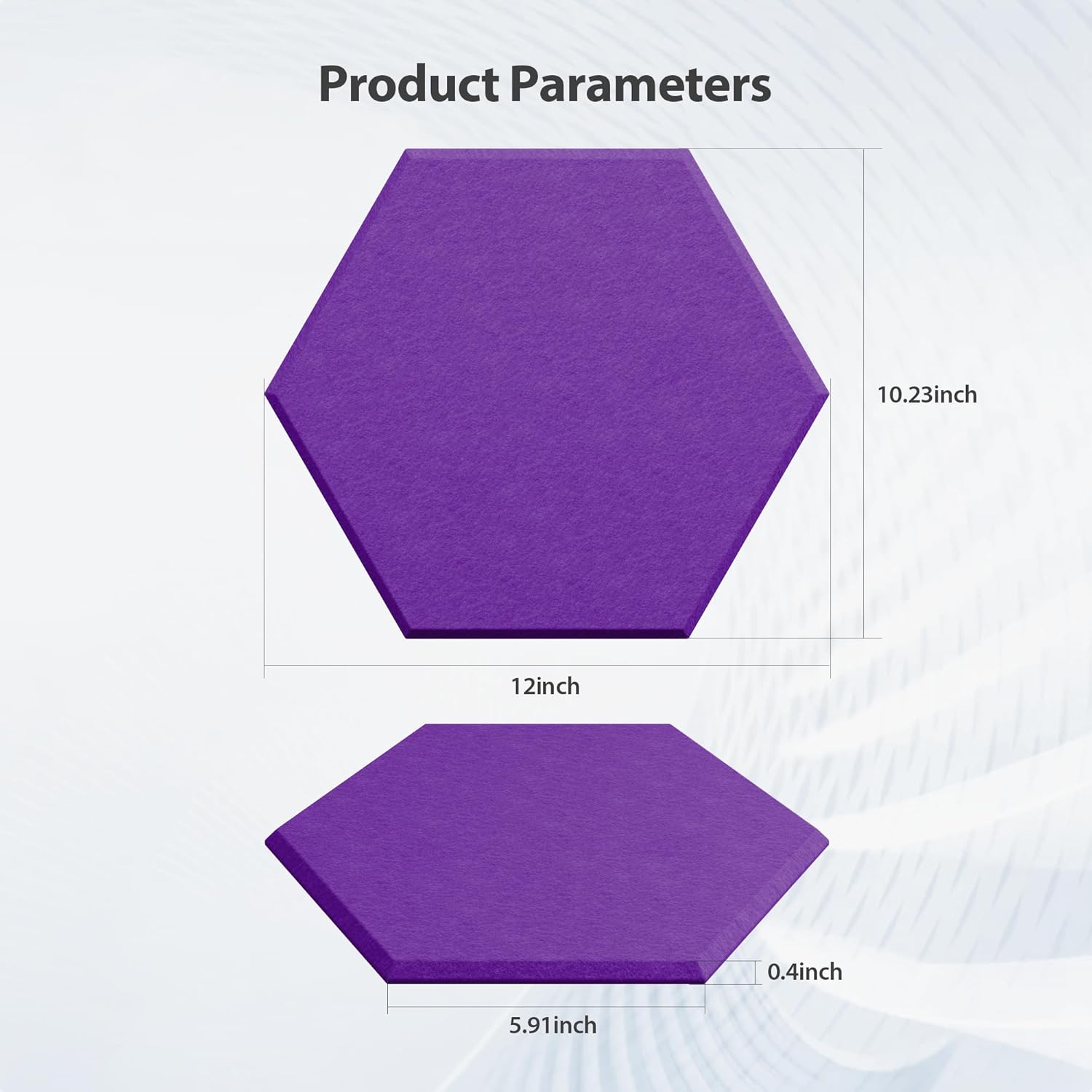 12 Pack Acoustic Panels Self Adhesive Sound Proof Foam, High Density Sound Acoustic Panel, 12X10.23X0.4 Inch Hexagon Panels in Home, Office, Reccording Room, Studio,and more(Violet)