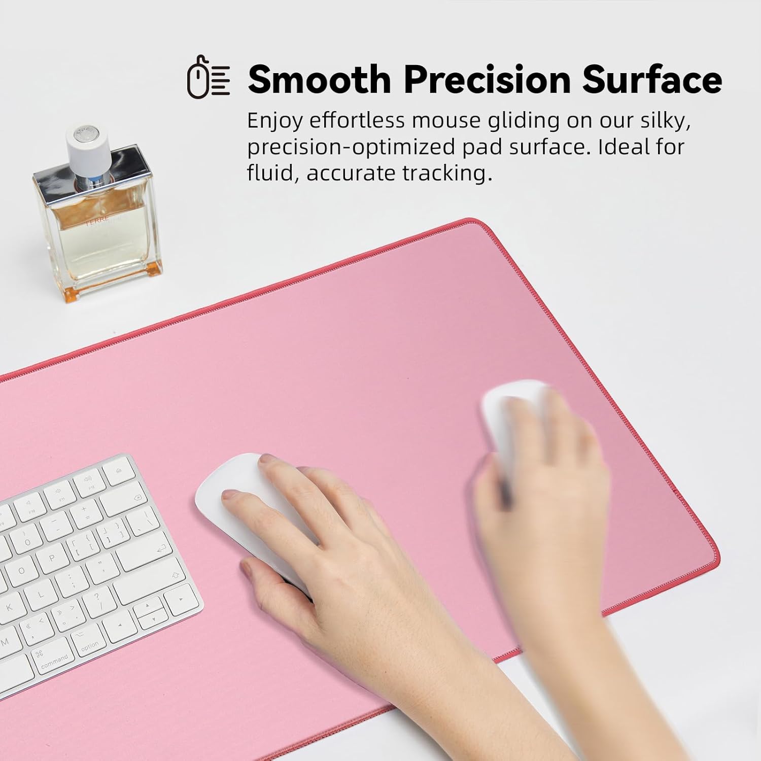 Waterproof Large Gaming Mouse Pad with Durable Stitched Edges, Non-Slip Rubber Base, Smooth Surface Mouse Mat Desk Pad for Home Office Gaming, 27.5"*11.8"*0.08", Dusty Rose