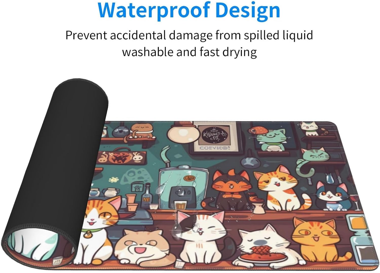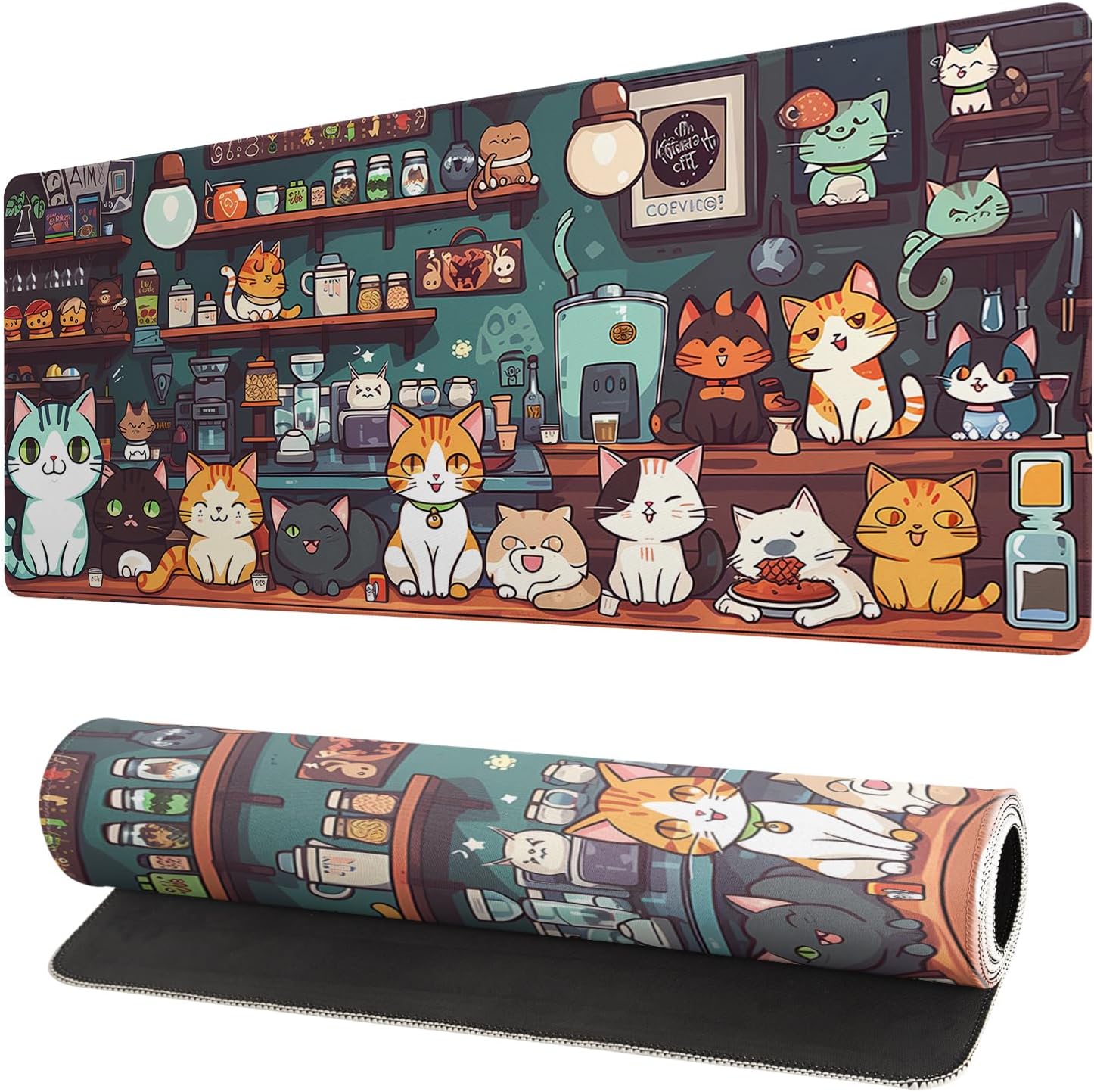 Gaming Mouse Pad Desk Pad,Extended Big Mouse Pad,31.5x11.8 Inch Long Computer Keyboard Mouse Mat Mousepad with 3mm Non-Slip Base and Stitched Edge for Gaming and Office⦠(cat)