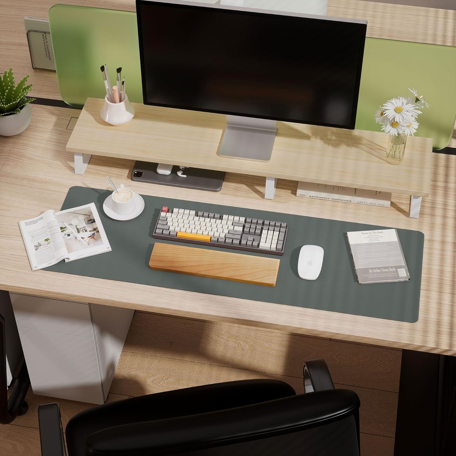 - Large Mouse Pad: Upgrade your workspace with our large desk pad, eliminating the need for an extra mouse pad. Transform your desk into a spacious and professional environment. The back side features a special suede design, significantly enhancing friction resistance with the desktop to prevent slipping. Experience a 70% increase in friction resistance compared to double-sided leather, ensuring a stable and secure workspace.