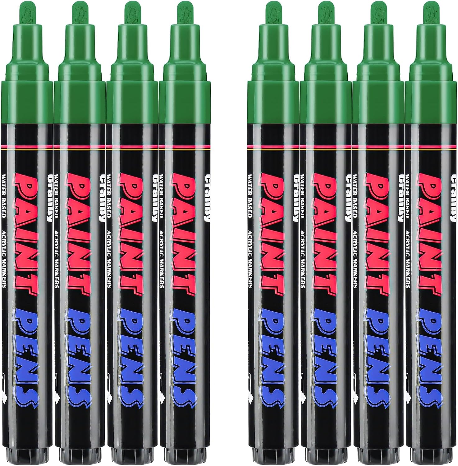 Green Paint Pens Paint Markers - 8 Pack Permanent Quick Dry Waterproof Marker Pens for Rocks Wood Fabric Plastic Canvas Glass Mugs Metal Tire Stone