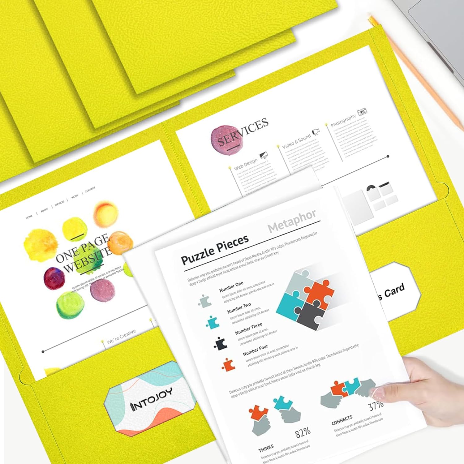 Folders with Pockets,IntoJoy 50 Pack 2 Pocket Folders Fit Letter Size Paper File Folders for School Office Business Home Filing Resume Portfolio (Yellow)