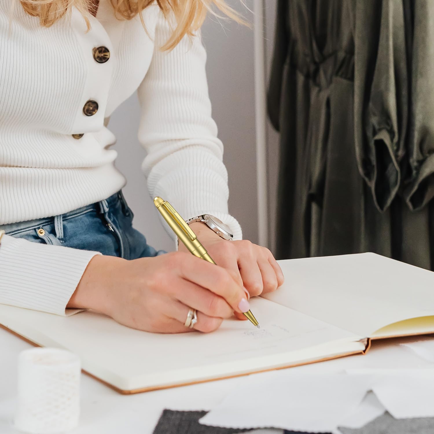 - ✅ Well-Balanced Writer - Twist to retract the ballpoint pen easily, and the nib glides smoothly but not loose. Each pen is made of solid metal but only weighs 24.7g / 0.87oz. You can use it for long hours of writing without getting tired.