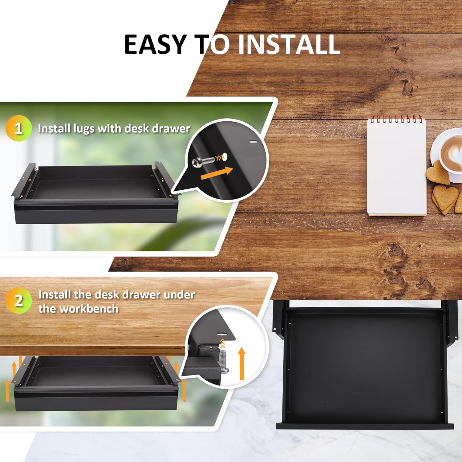 - Extra Storage Space: Metal under desk drawer creates additional storage space, help to storing various small items, keeps your essentials within reach, reduce desktop clutter ,out of sight for a tidier workspace