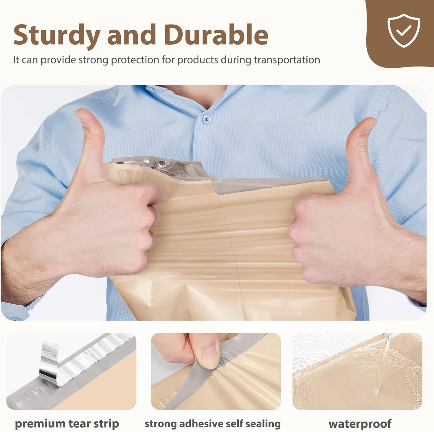 - Strong & Durable Construction- Fuxury mailers poly bags are crafted with the premuium material, making them not easily punctured and damaged. The reinforce sealing on the edge of the plastic mailing bag makes it tear-resistant and waterproof. You can count on our mailer bags to keep your packages safe until they reach to destination even though in foggy or rainy days.