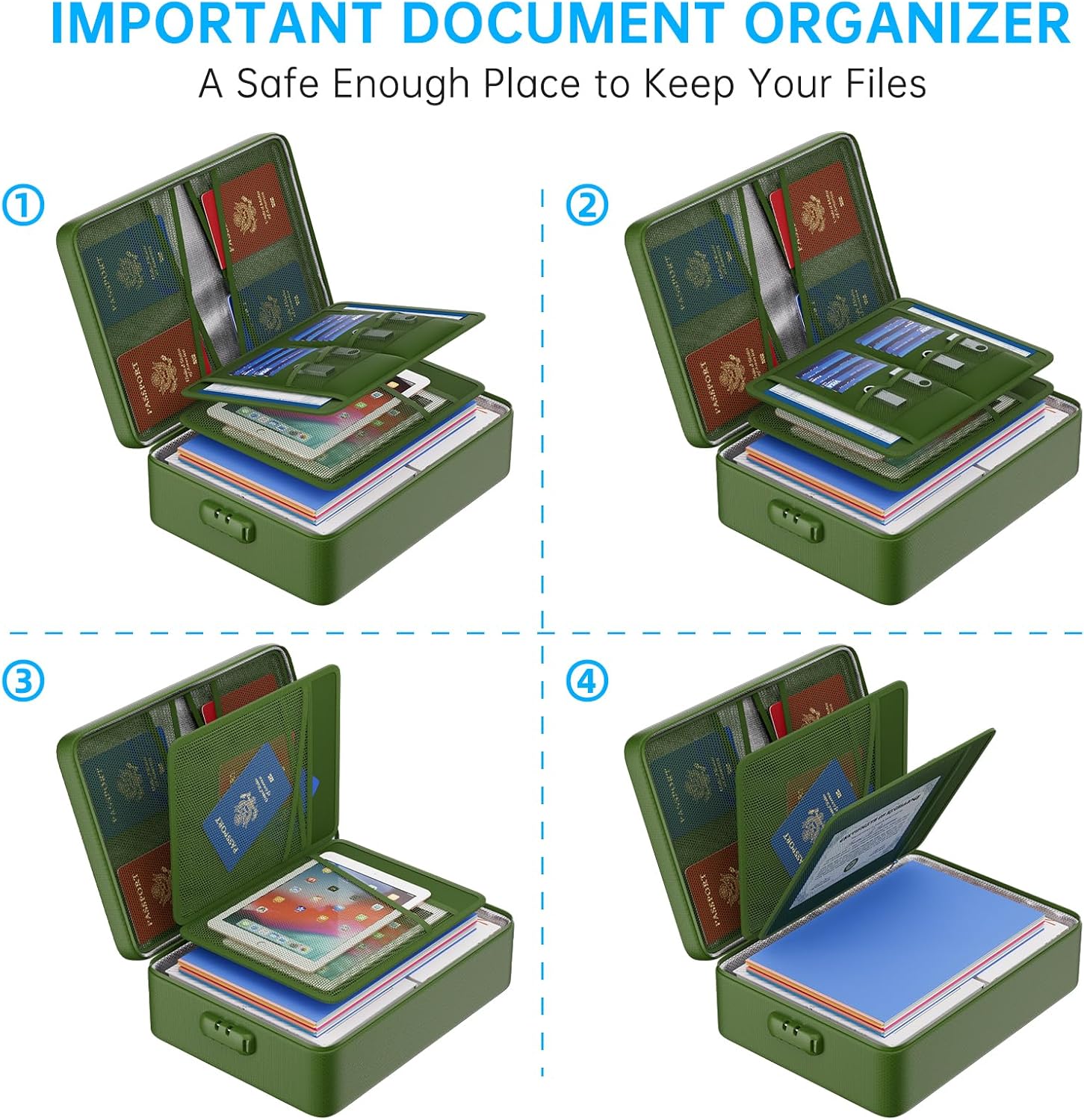ENGPOW 5200°F Fireproof Document Bag with Lock, Upgraded Heat Insulated Fireproof&Waterproof Box 8 Layers Document Organizer, Portable Home Travel Safe Storage Box for Important Files, Laptop,Green