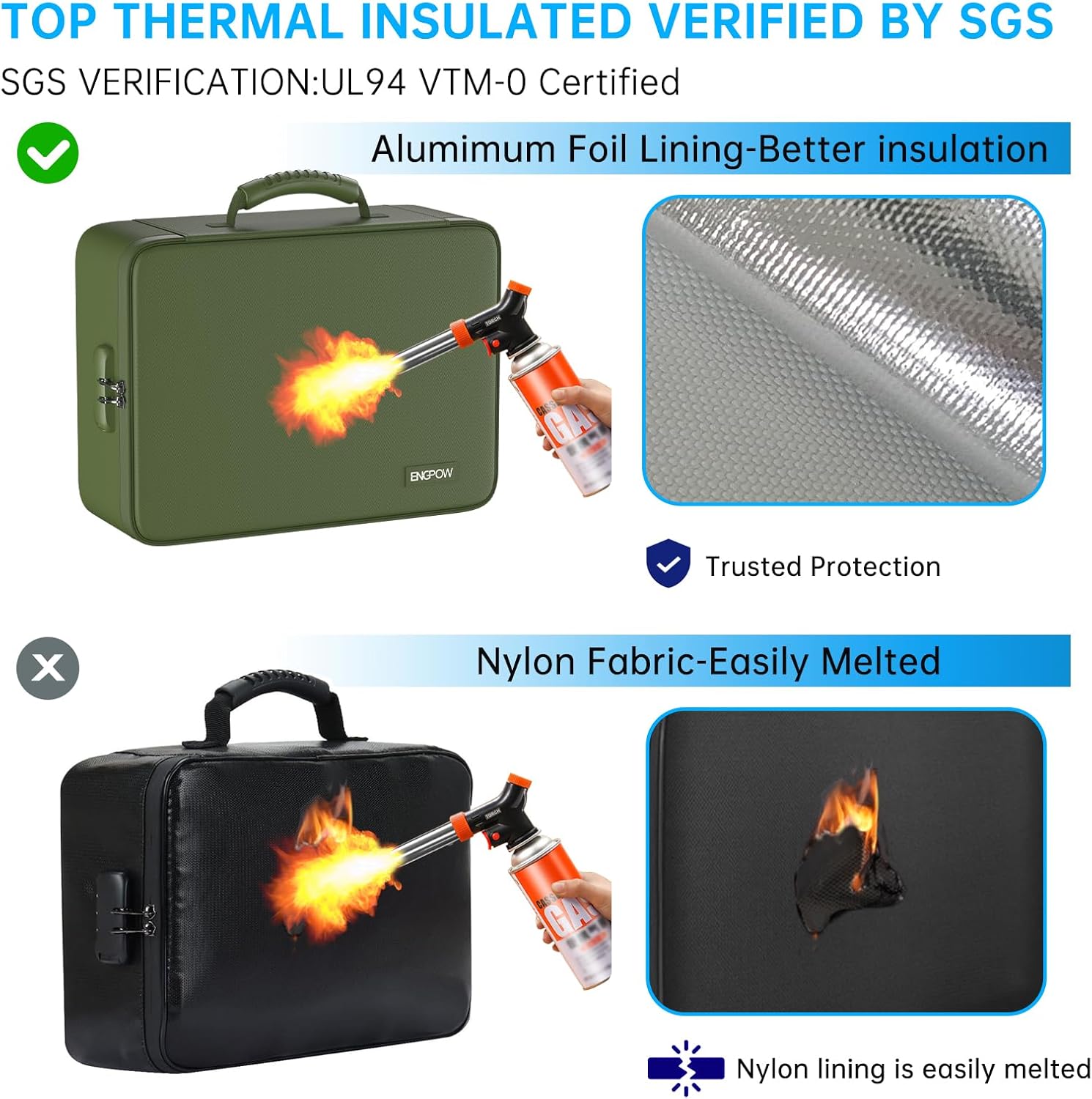 ENGPOW 5200℉ Fireproof File Organizer Bag with 13 Pocket Accordion File Folder,Document Organizer Box with Lock&Labels,Multi-Layer Portable Home Travel Safe Storage for Important Documents,Green