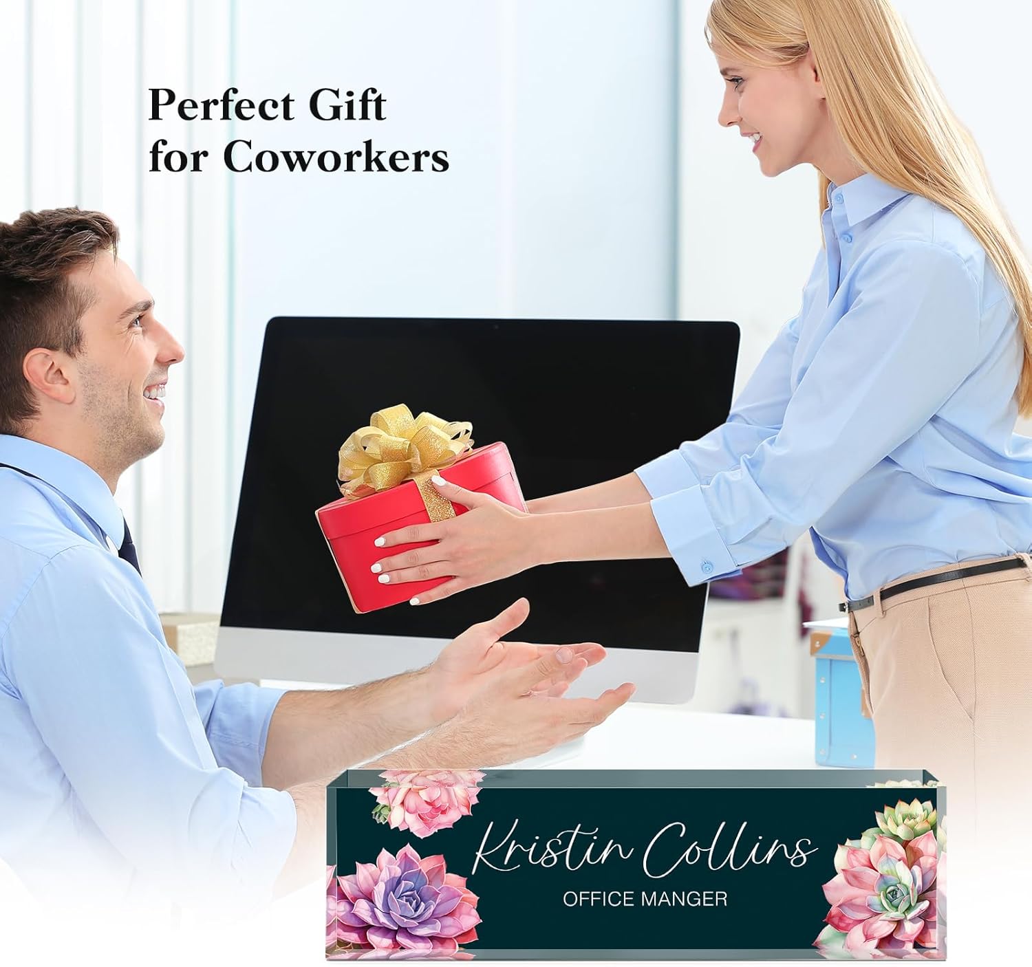 Custom Name Plate for Desk, Acrylic Office Decor For Women Men, Personalized Office Desk Accessories, Teacher Employee Appreciation Gifts For Social Worker Boss Coworkers (Succulent 2)