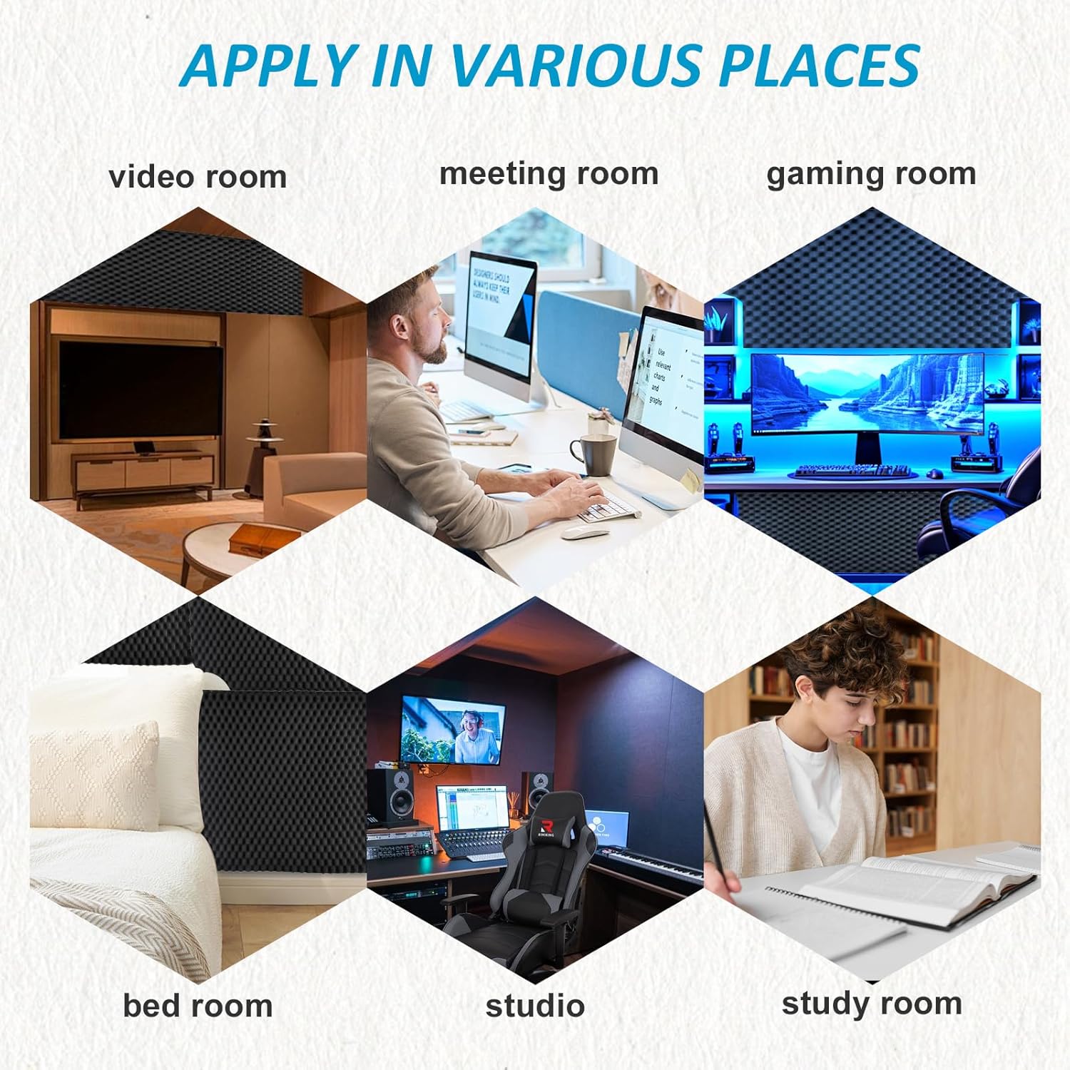 - Versatile - Our noise reduction panels are made of flame-retardant, odorless materials and are suitable for use in recording studios, music studios, home theaters, private rooms in karaoke rooms, daycare centers, laundry rooms, and other locations where high audio processing is required