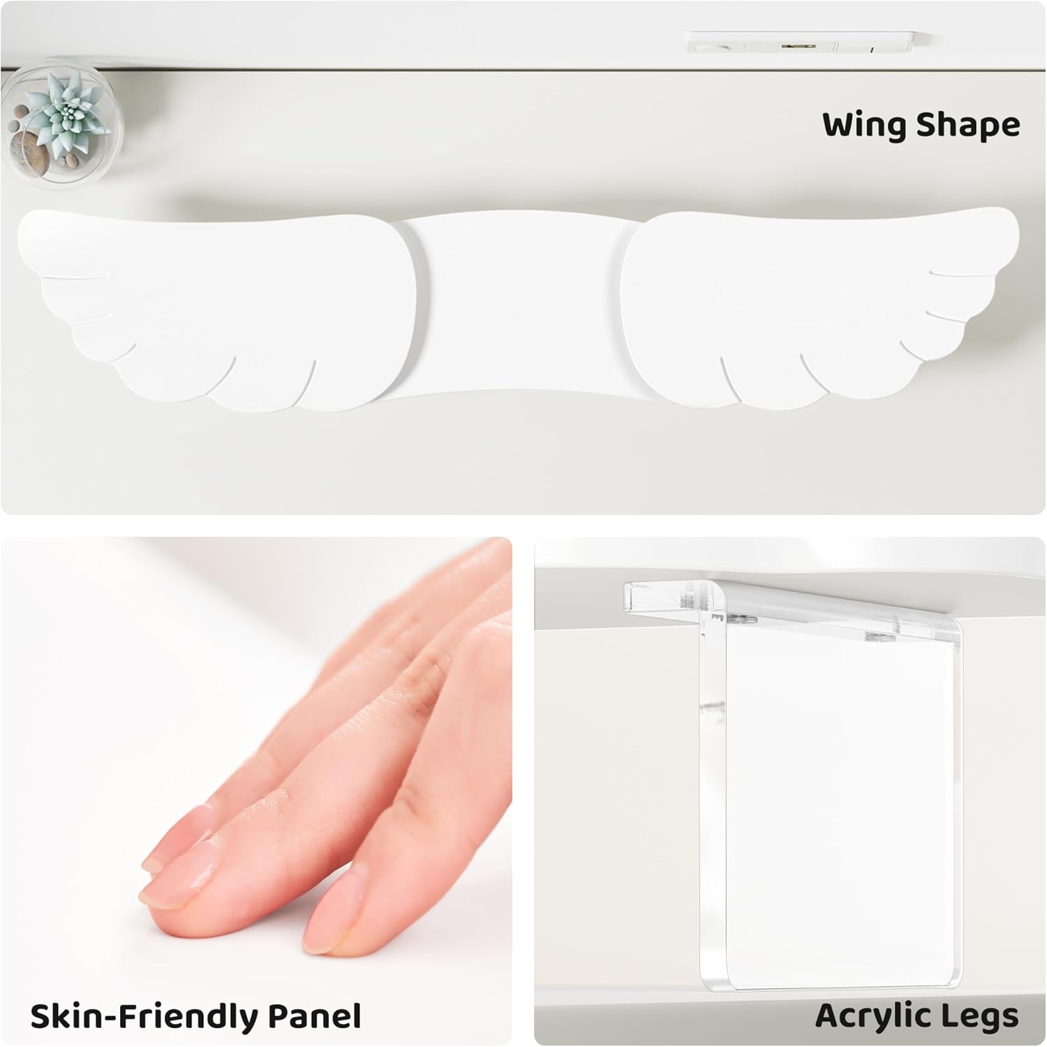 Dual Monitor Stand Riser, Wing-Shaped Sturdy Desktop Wood Stand for 2 Monitors, White Riser for Laptop, PC, Computer