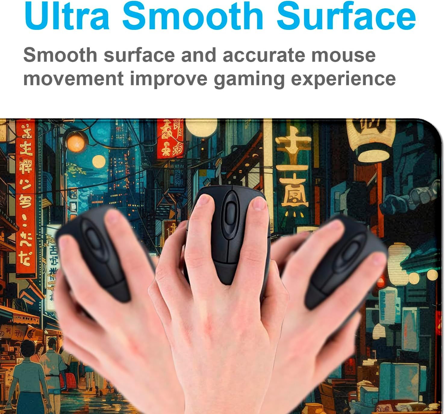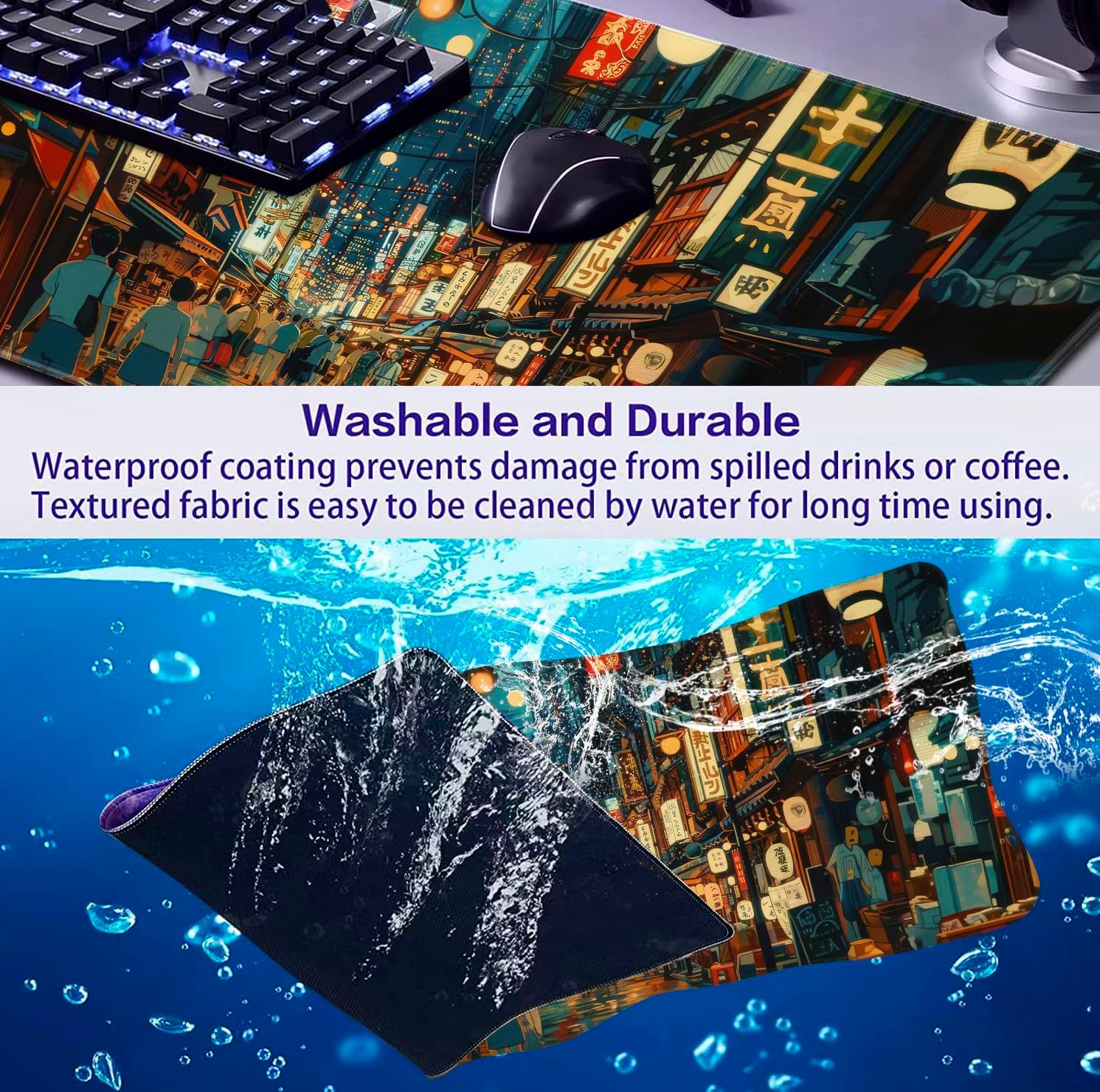 Cute Japanese Street Desk Mat, Anime Tokyo Street Night Scene Large Mouse Mat XXL, Computer Desk Mat 35.4 x 15.7 x 0.12 Inches