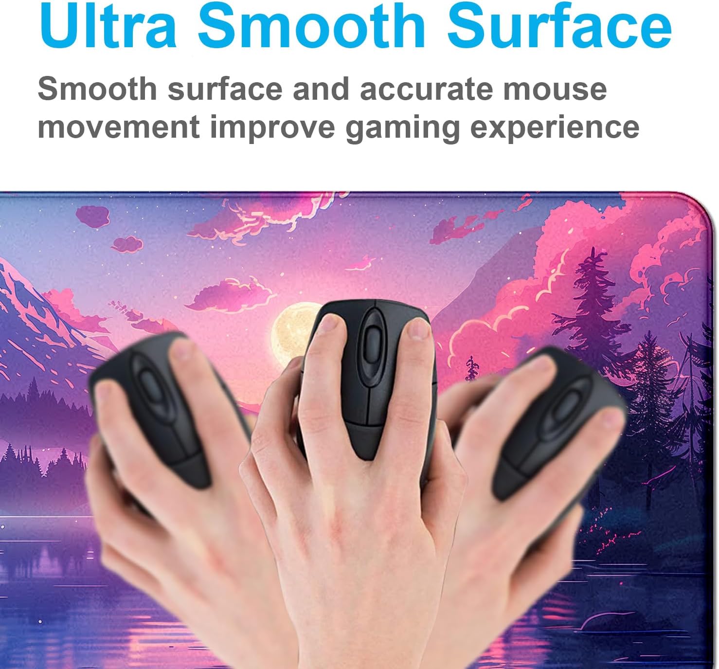 - Non-Slip Natural Rubber Base: This extended large mouse pad is soft and thick 3 mm/0.12 inches, the base is made of high quality natural rubber, which is harmless to human health. There will be no unpleasant smell. The mouse pad is designed with dense textured rubber, which can firmly grasp your desktop, avoid random movement, and provide stable operation for your mouse/keyboard.