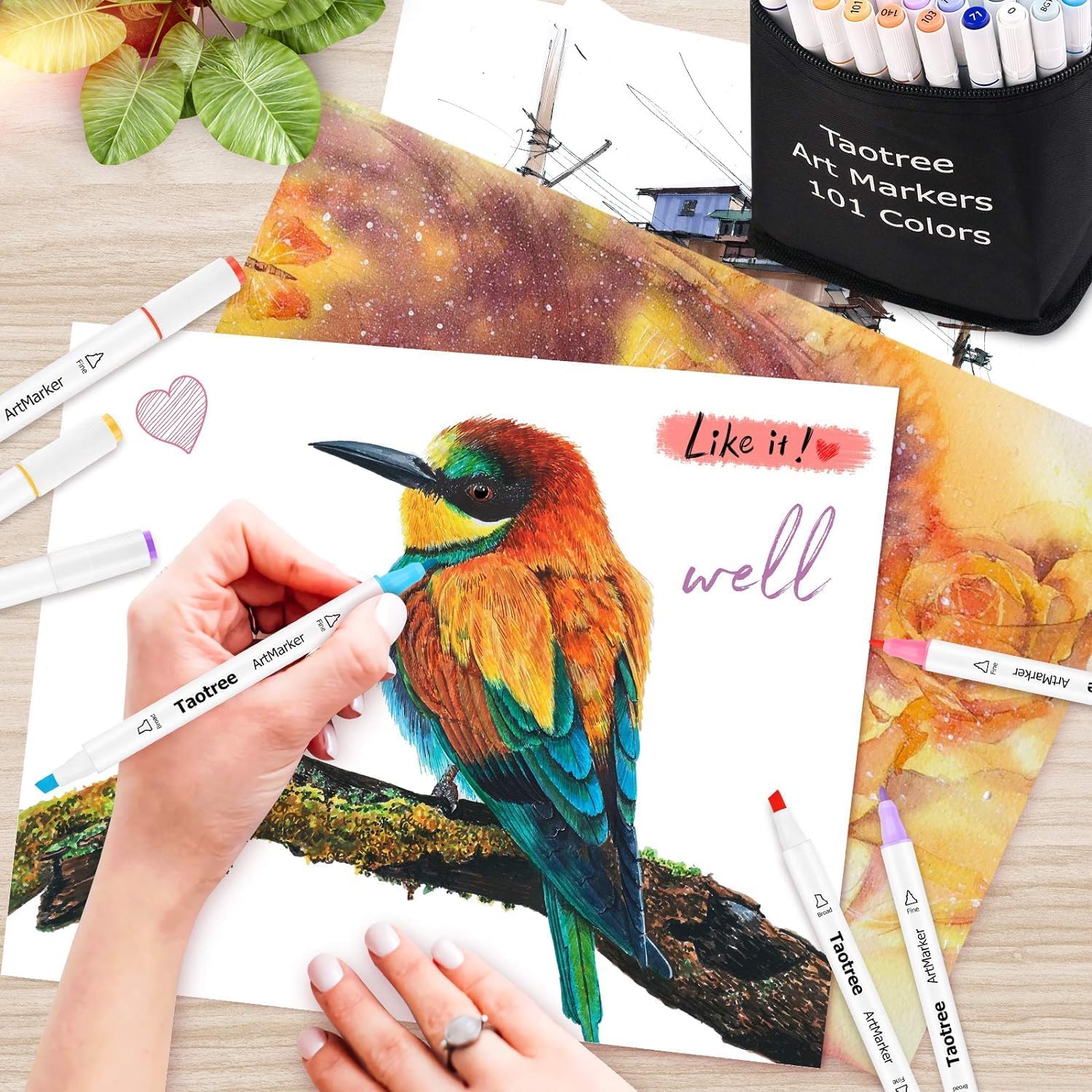 Taotree Alcohol Markers 101 Colors Dual Tips Art Markers Sketch Pens Set, Art Supplies Kit, Drawing Pens Set for Adult Coloring Books Painting, Sketching, Christmas Gifts for Teens Girls Boys Artists