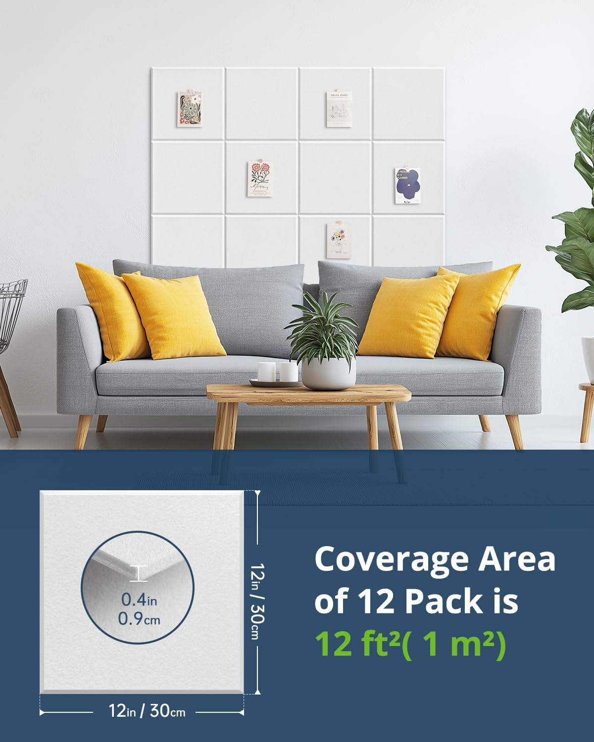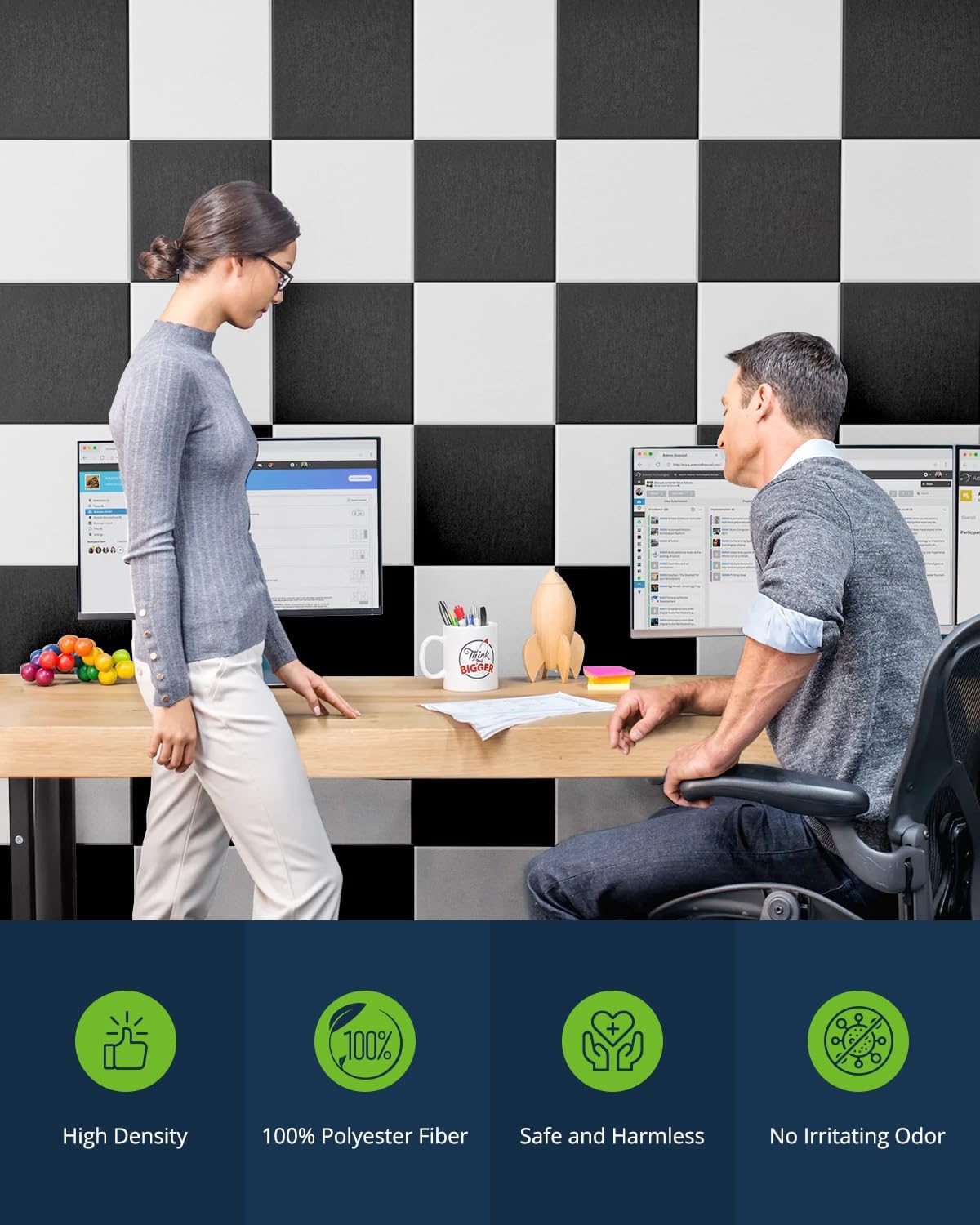 12 Pack Acoustic Panels Square Soundproof Wall Panels 12"X12"X0.4" Self-adhesive Sound Proof Panels for Walls High Density Acoustic Foam Panels for Home, Door, Office, Reccording Studio Black