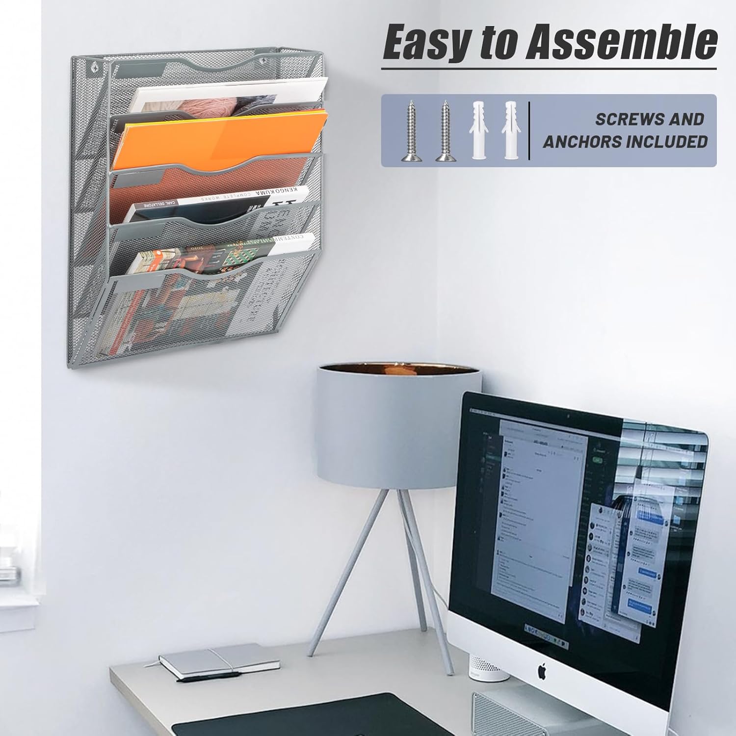 - 5 Pockets: The wall file organizer comes with mounting screws that can be easily mounted on the wall