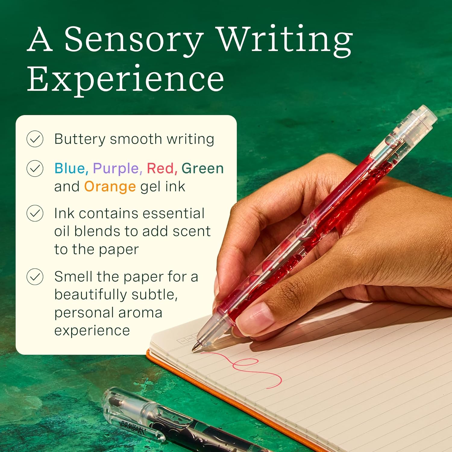 - Scented Ink: Each pen has a unique scent, infused with our premium Essential Oil Blends. Hints of garden mint, lavender, pine, cinnamon, and grapefruit create an extraordinary aroma experience.