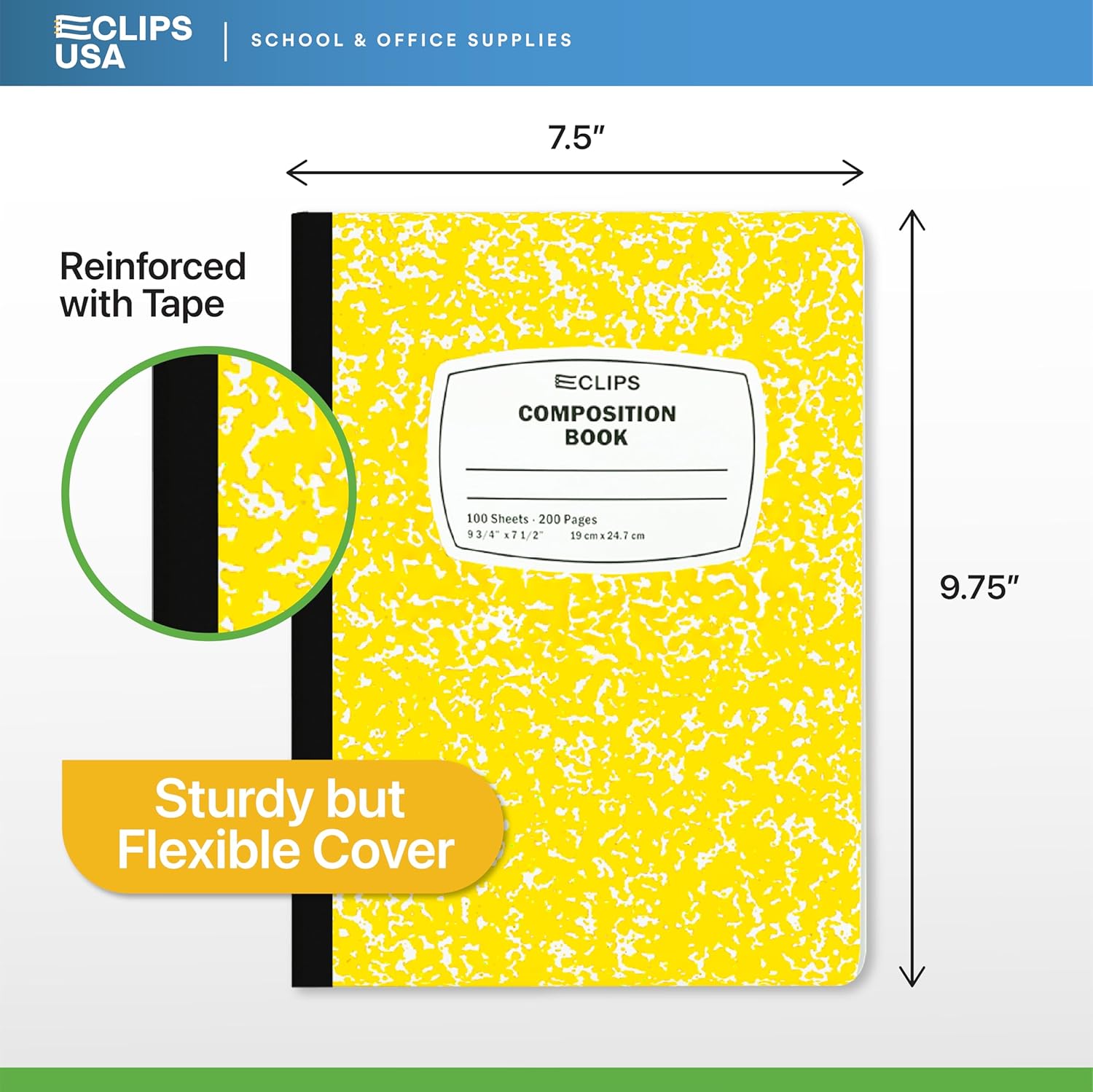 E-CLIPS USA Composition Notebooks, (24 Pack), Wide Ruled Composition Notebook, Marble Composition Notebook, 100 sheets, 200 Pages (24, Yellow)