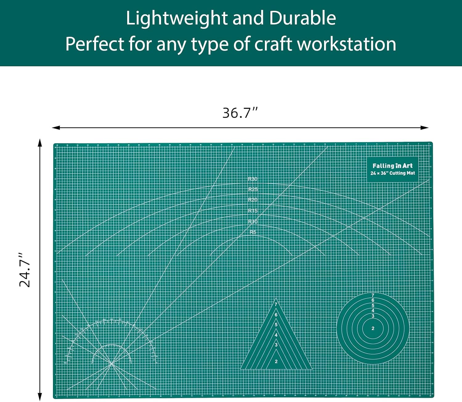 - Precise Cutting: Falling in Art double-sided cutting mat is printed with inches, metric grid lines, radius, and different angles. With easy-to-read and clear gridlines on both sides, it ensures accurate cuts for all your crafting needs