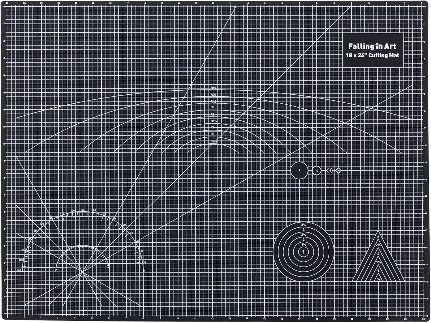 Falling in Art Self Healing Cutting Mat, 18x24" Cutting Mats for Sewing, Double-sided 5-Ply Fabric Cutting Board for Crafting, Quilting and Sewing Projects, Black