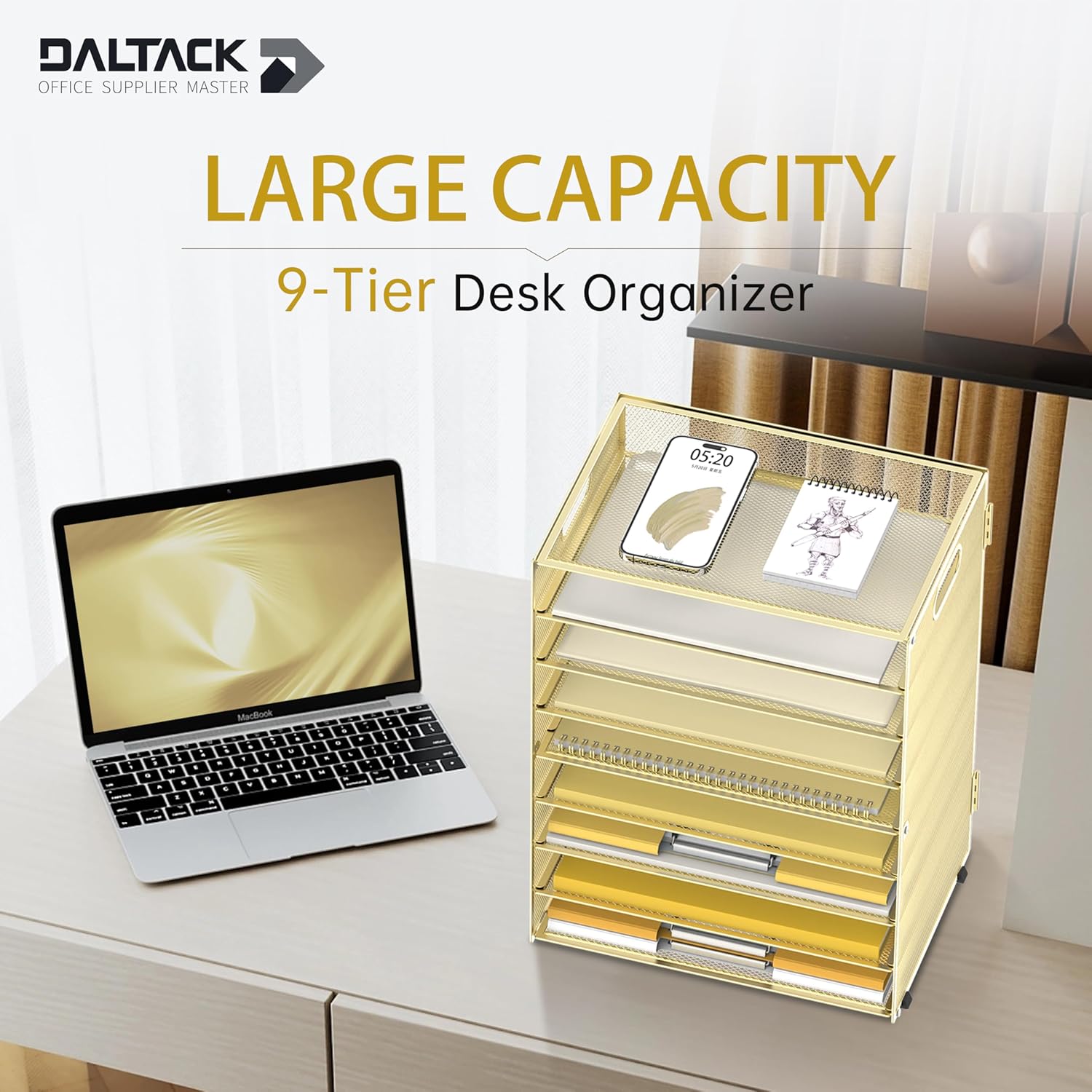 - [Perfect Paper Organizer] The 9-tier paper tray desk organizer has a large capacity for all your office supplies and accessories, such as: letters, paper, printing paper, books, folders, bills, magazines and so on. Keep your desk away from clutter and increase your productivity.