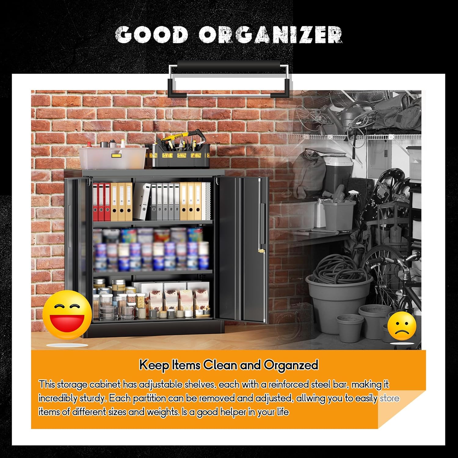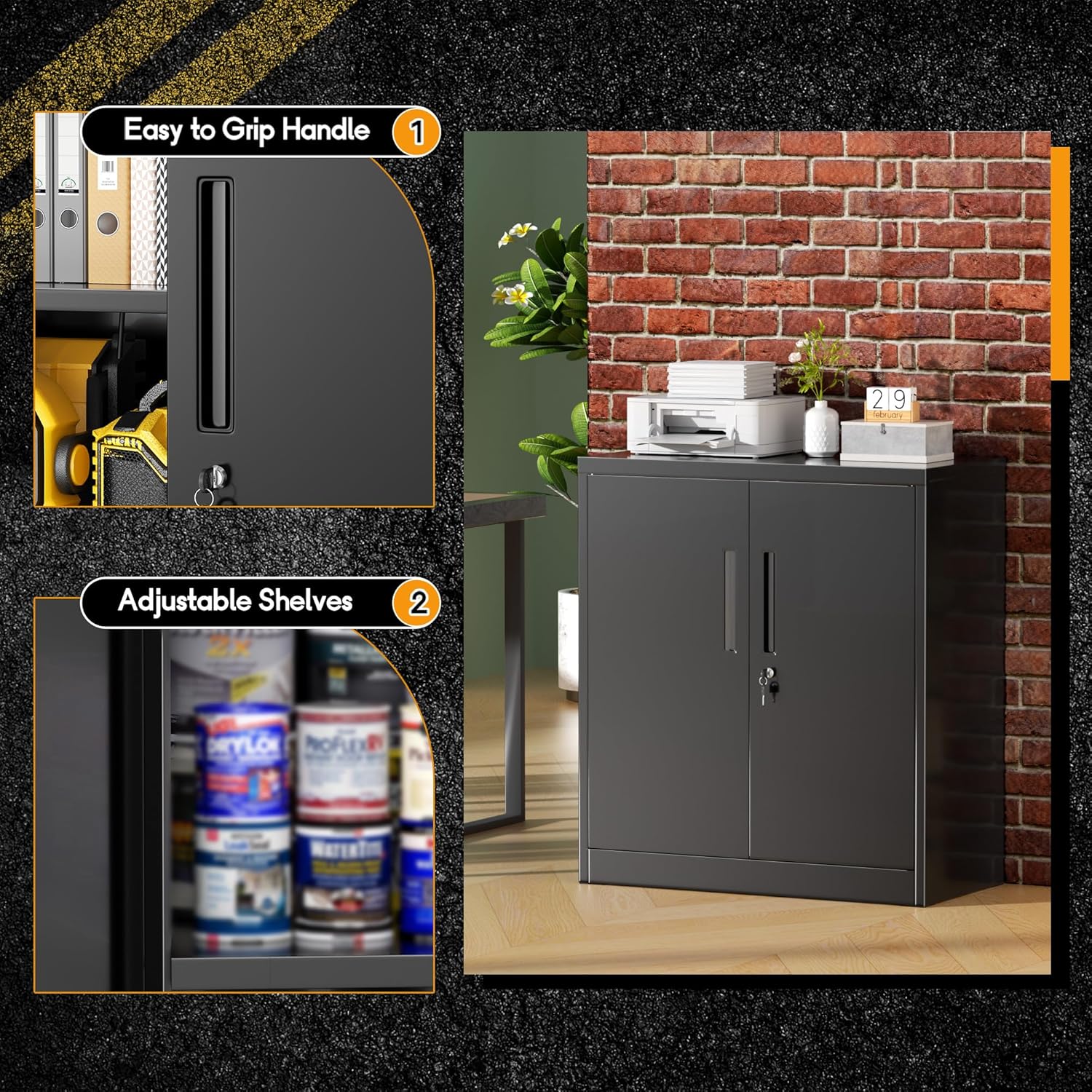 Greenvelly Metal Garage Storage Cabinet,36" Black Lockable Metal Cabinets with 2 Doors and Shelves,Storage Locking Counter Cabinet for Home Office,Garage,Kitchen,School