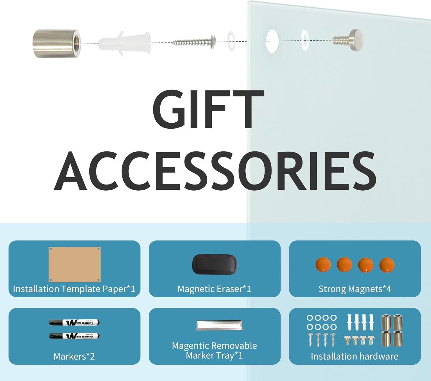 - Easy to Install: Glass Whiteboard Magnetic Dry Erase White Board is easy to install. Through the assembly instructions provided by us, you can easily install the whiteboard vertically or horizontally on the wall.