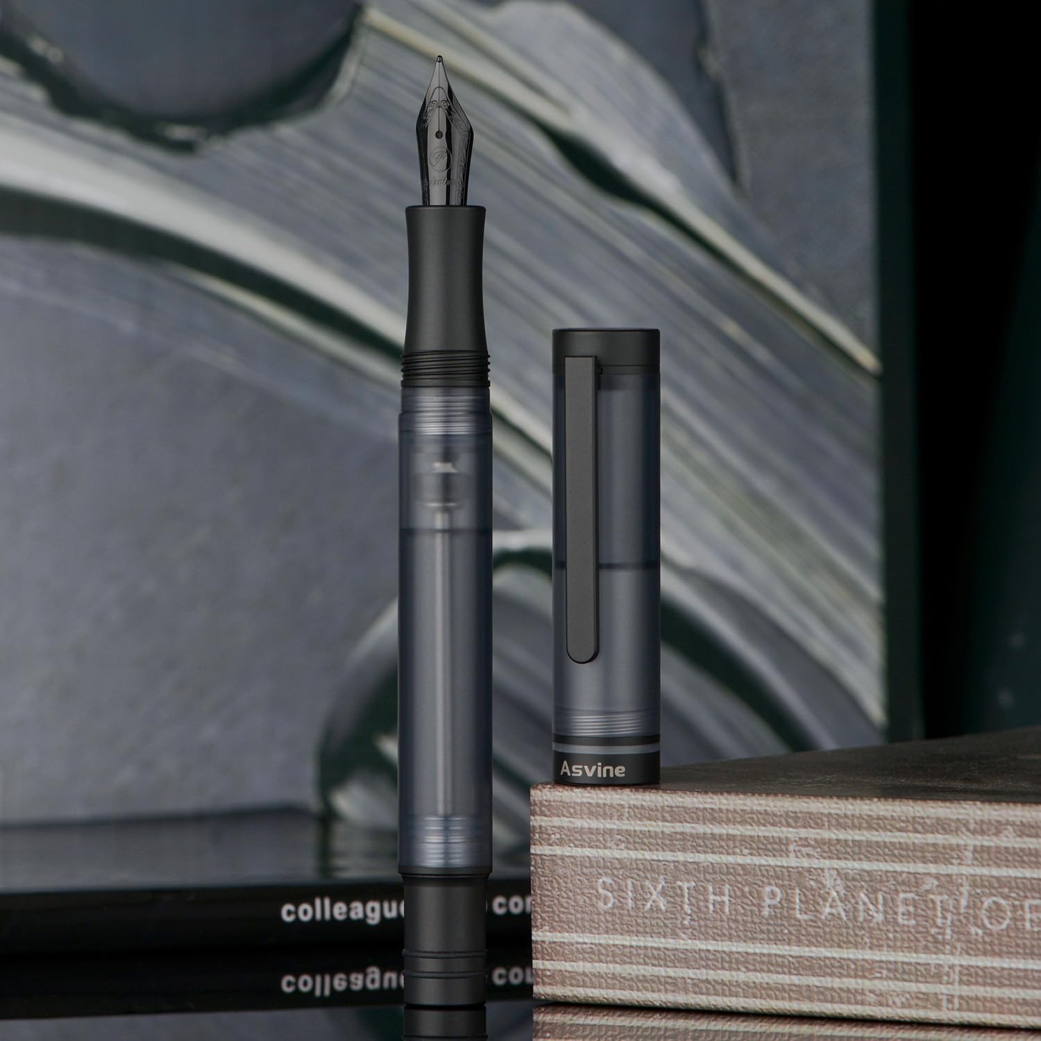 Asvine V200 Titanium Fountain Pen Vacuum Filling, Matte Black Extra Fine Nib Clear Demonstrator Acrylic with Pen Case and Wrench
