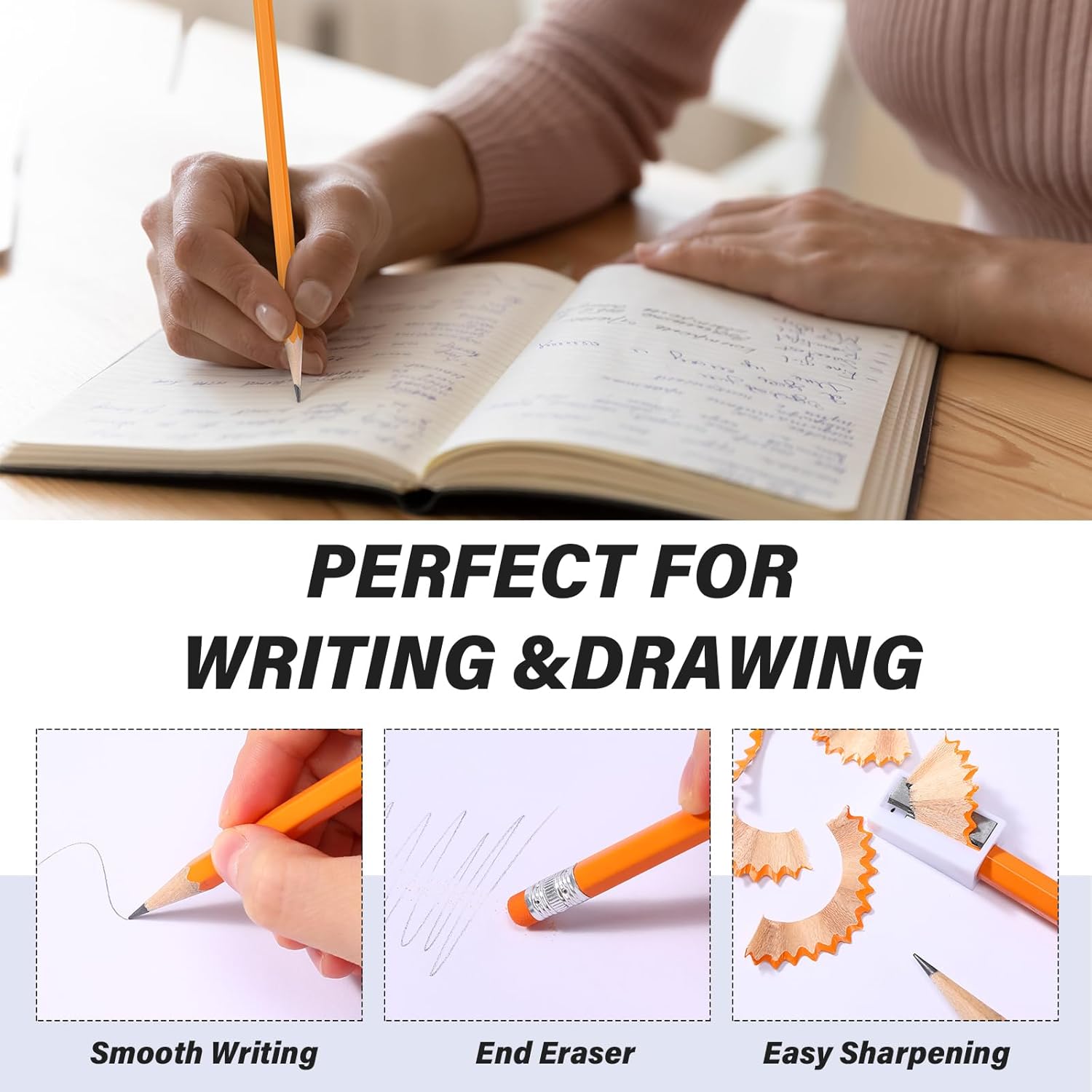 - Design and Durability: take pleasure in the durability and stability that these unsharpened pencils with eraser afford; Made from wood and solid graphite, they are safe, anti falling, and house a medium strength HB core that is not easy to break during use; Serving stability even on uneven surfaces, their solid core leaves substantial, fade resistant impressions and ensures your lines remain defined