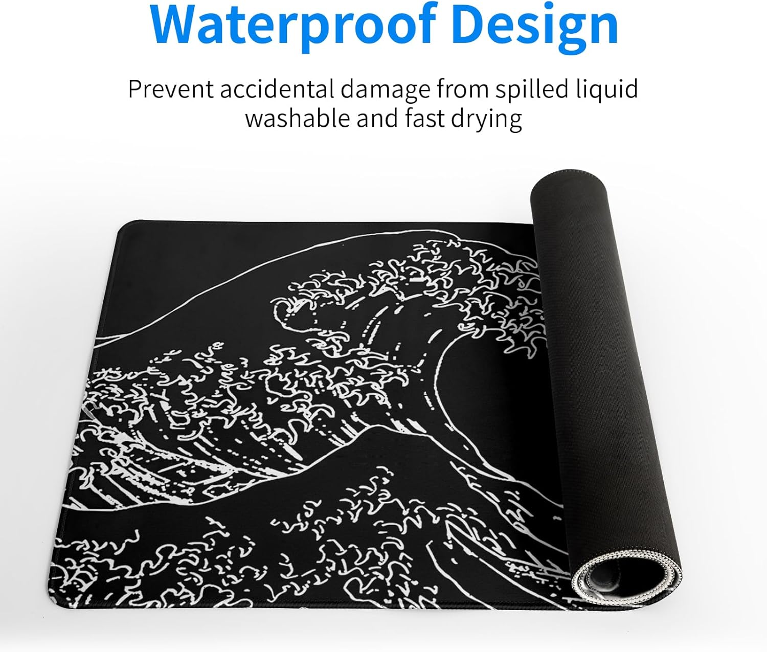 - ā„[Easy To Clean]:This large Black Wave of Kanagawa mouse pad for desk, Spill-proof coating protects your desktop from spilled water, Drinks, Ink and the other liquid spilled liquid or other accidents.Easy to clean, Just wipe with a wet cloth or paper, Does not fade and can be washed and foldable without leaving creases, Easy to carry.