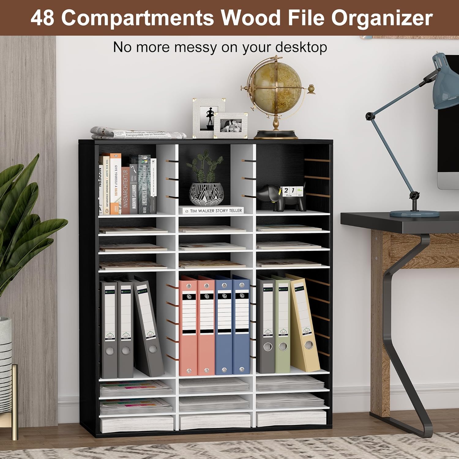 - Space-saving Storage Organizer: The literature organizer has a total of 48 slots. It can help you sort, store and organize literature, magazines, comic books, files, student assignments, binders, catalogs, diaries, papers and documents on your desk, counter or floor quickly and easily and get you valuable workspace back