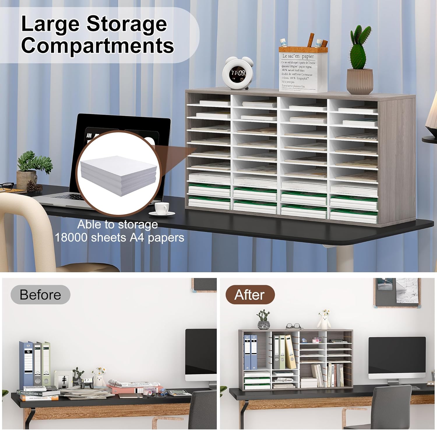 EasyPAG Mail Organizer Countertop, Wood Literature Organizer with Adjustable Shelves, Student Classroom Mailbox for School, Desktop Paper Sorter for Office Home, 36 Compartments, Retro Gray/White