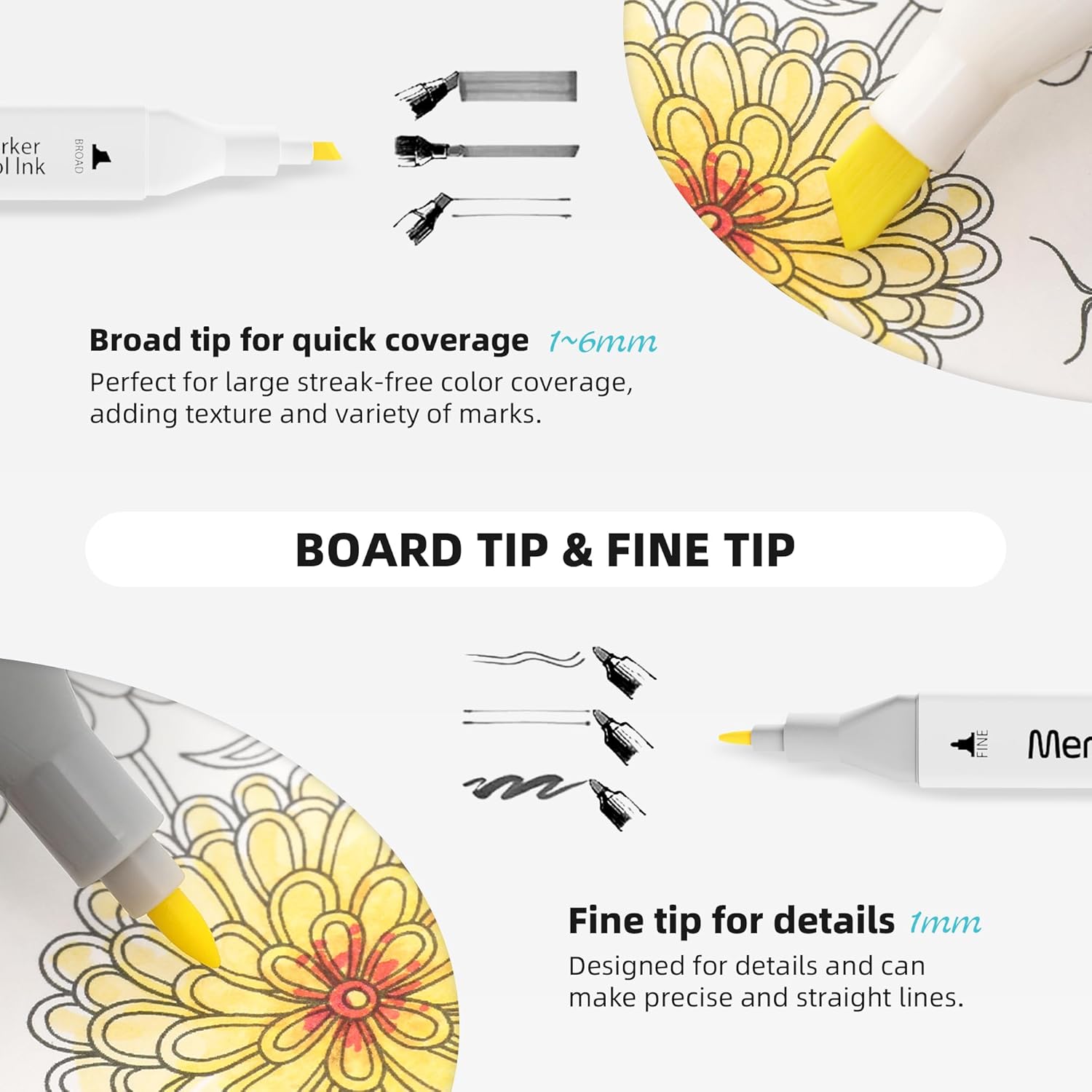 - VIBRANT COLOR SELECTION - Our set of alcohol marking ink provides versatile coloring options for drawing, writing, sketching, illustrating, shading, designing, rendering, manga, anime, adult coloring books, and more. With 60 vibrant colors, you'll have access to a world of unlimited creativity