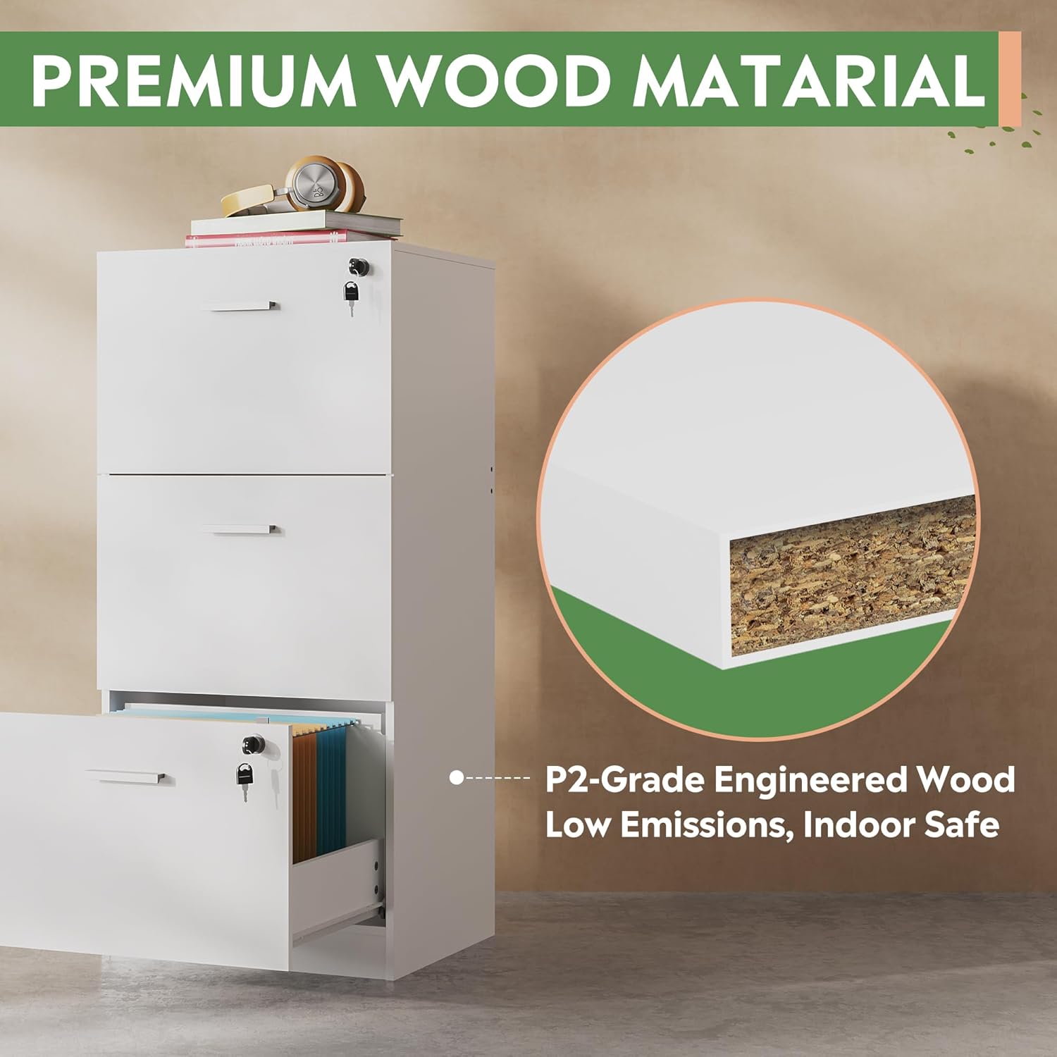- ăModern & FunctionalityăThe DEVAISE 3-drawer wood file cabinet features a sophisticated wood finish and streamlined design, adding a touch of class to your home office. Its spacious storage keeps your files organized without occupying much floor space.