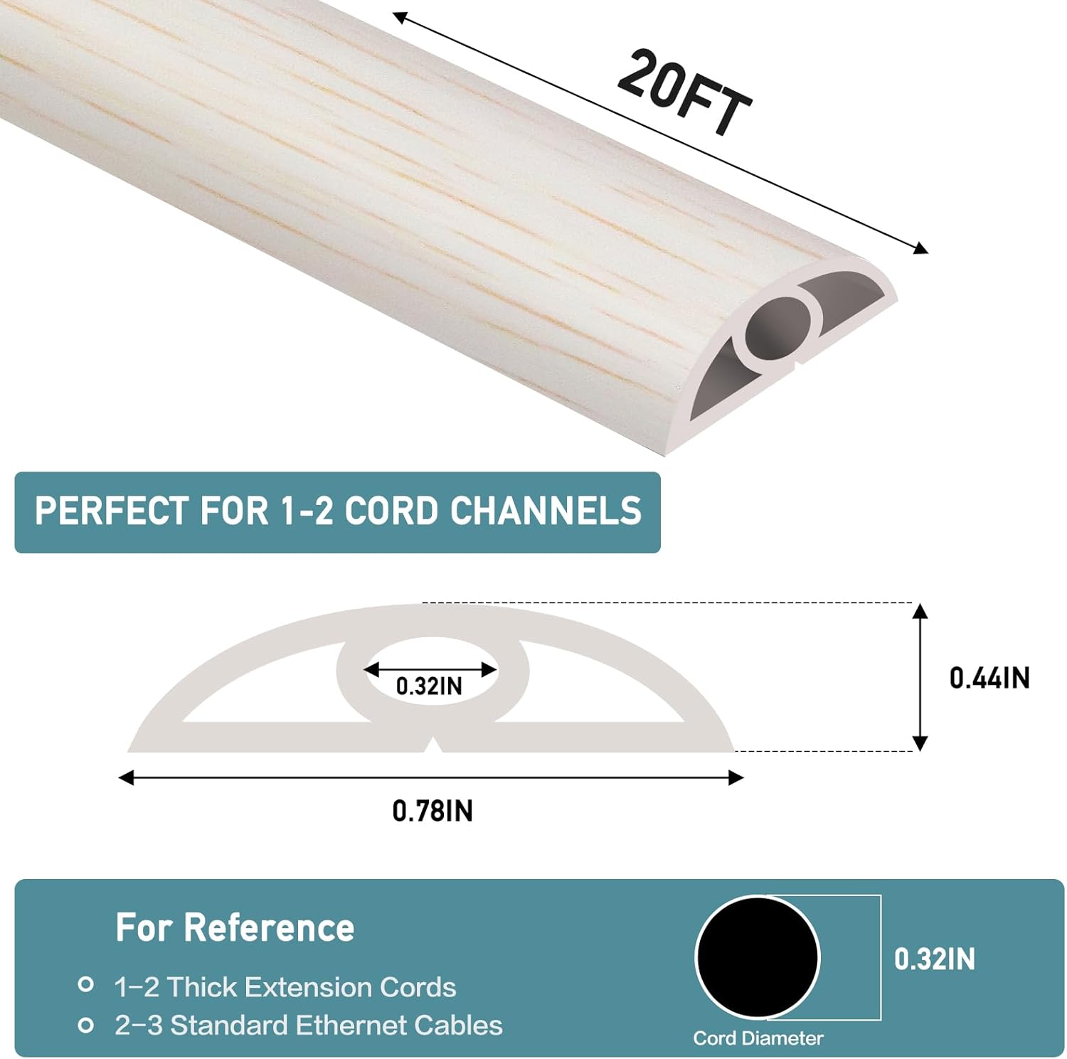 Floor Cord Cover Self Adhesive Cord Hider Floor Extension Cord Covers for Floor Power Cord Protector Cable Management Prevent Cable Trips Cable Cavity 0.32" W x 0.32" H (Beige Wood, 20Ft)