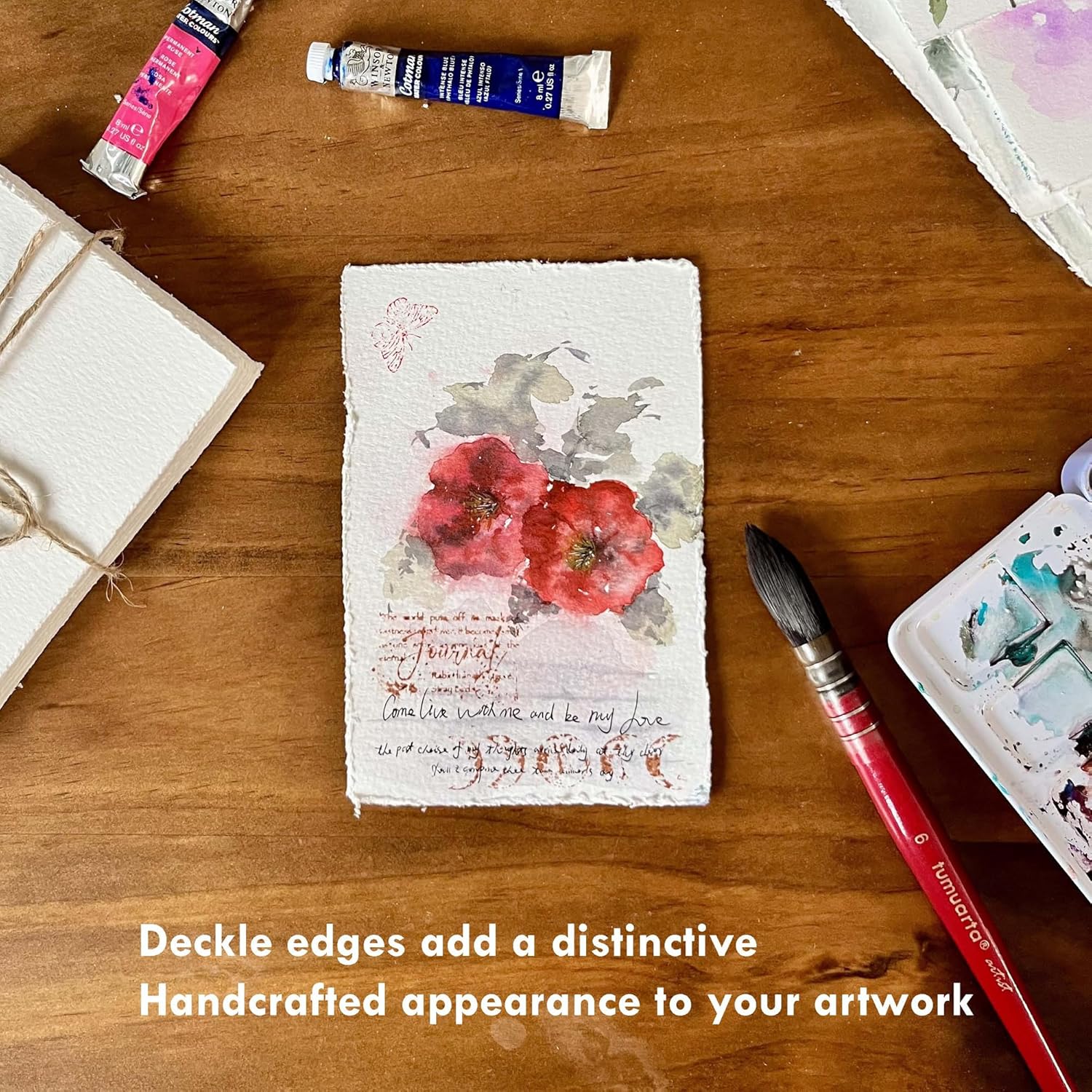 - Premium Quality: 100% cotton, 140 lb (300 g/m²) cold press watercolor paper with a deckle edge for a natural, artistic look.