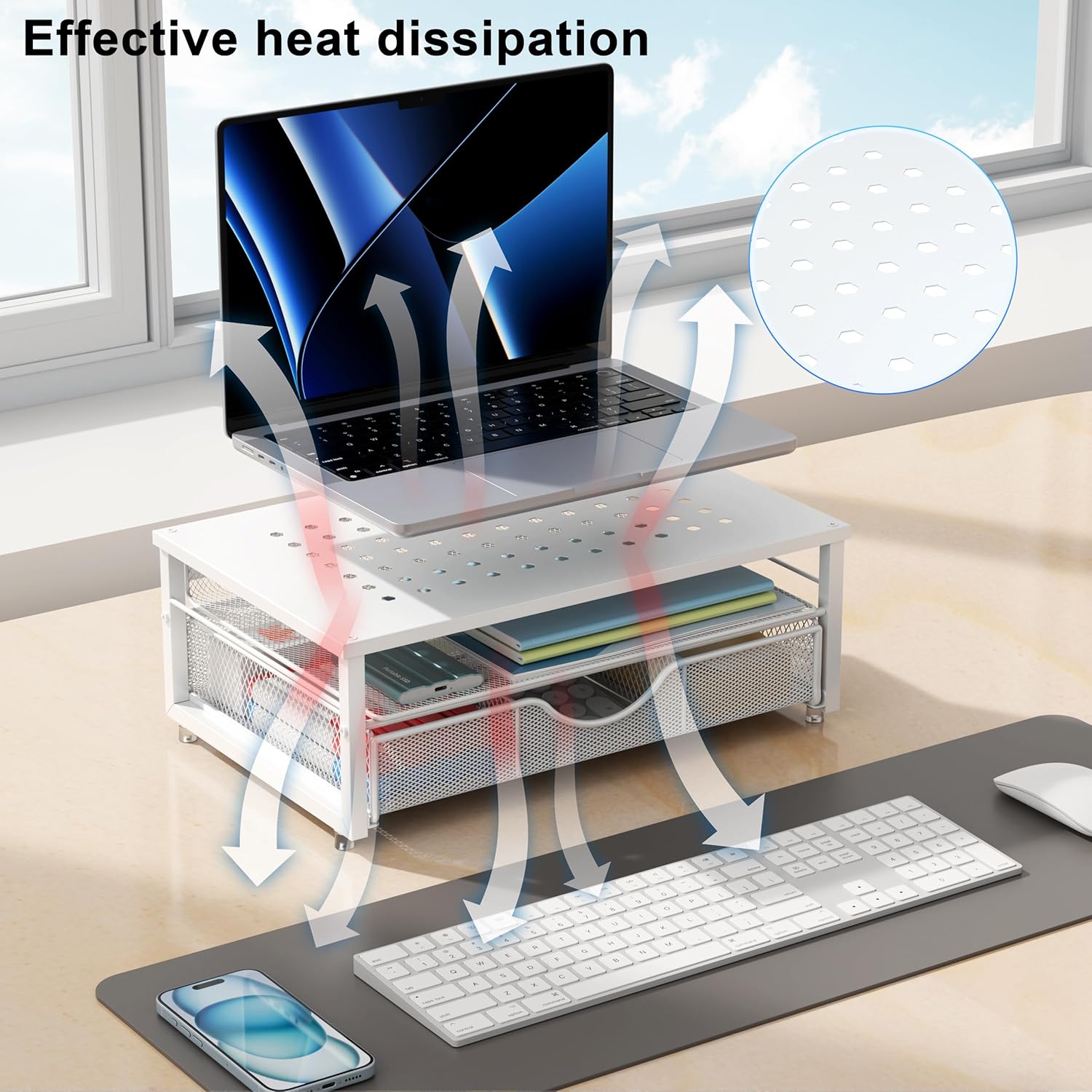 gianotter Computer Monitor Stand Riser, office organizer with Drawer, Office Organizers Storage for Classroom Office Supplies (White)
