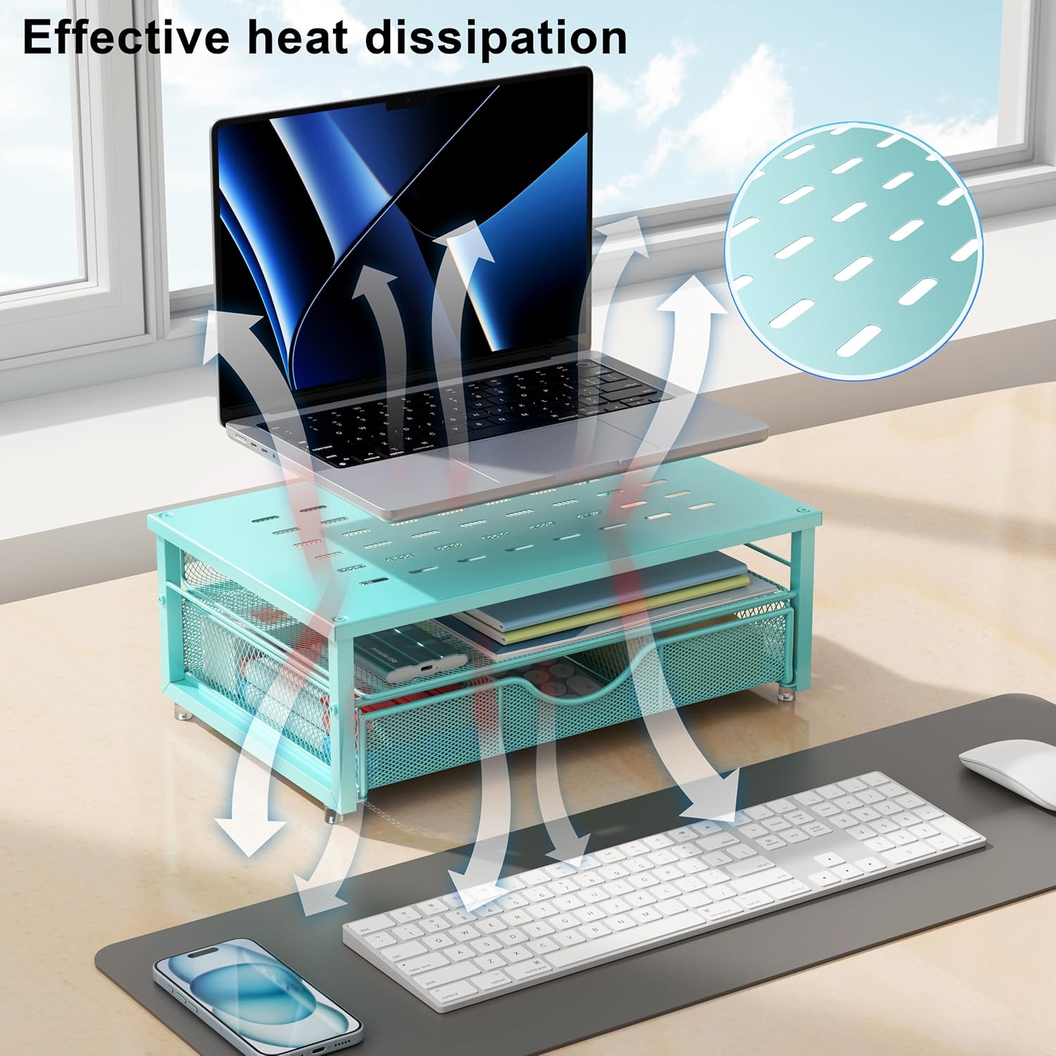gianotter Computer Monitor Stand Riser, office organizer with Drawer, Office Organizers Storage for Classroom Office Supplies (Blue)