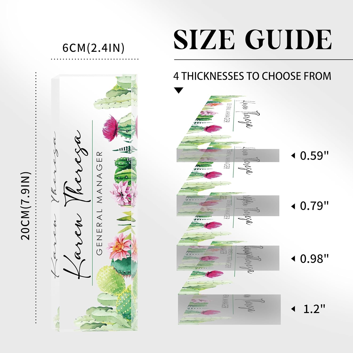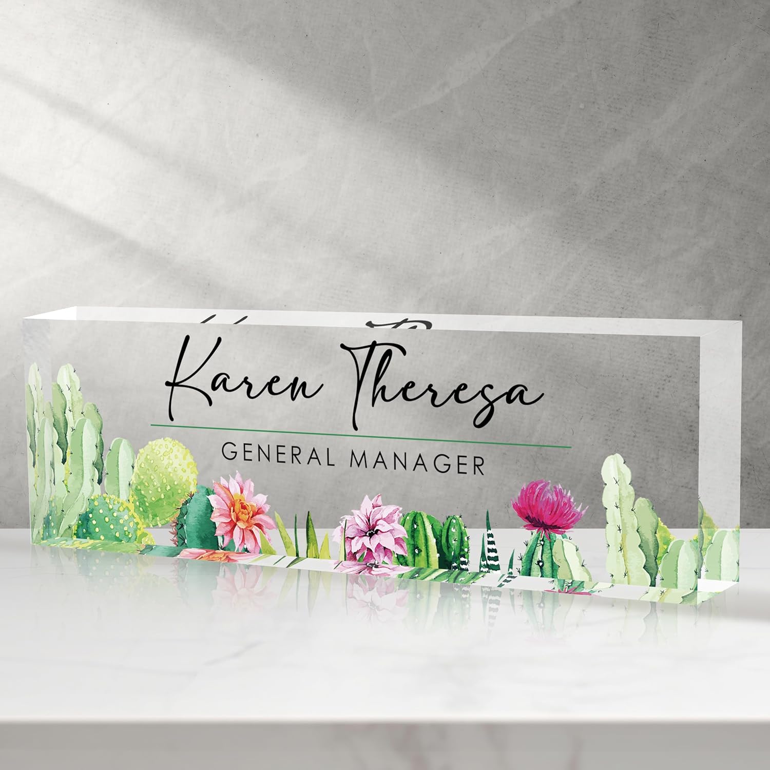 - 🍀 High Quality Acrylic - The name plate is made of high-quality transparent crystal acrylic blocks and printed on the back of the name plate using UV HD printing technology. The text and beautiful floral patterns present a 3D stereoscopic effect. The color is bright and will not fade, and can be used for a long time.