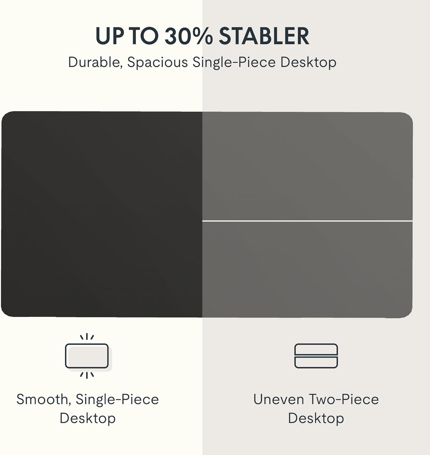 - AMPLE WHOLE-PIECE DESKTOP: With its one piece eco-friendly desktop, this standing desk provides plenty of room for your computer setup, documents, and accessories, creating a well-organized and productive work environment. Due to hand measurements, desktop dimensions may vary slightly by 0 to 1”.