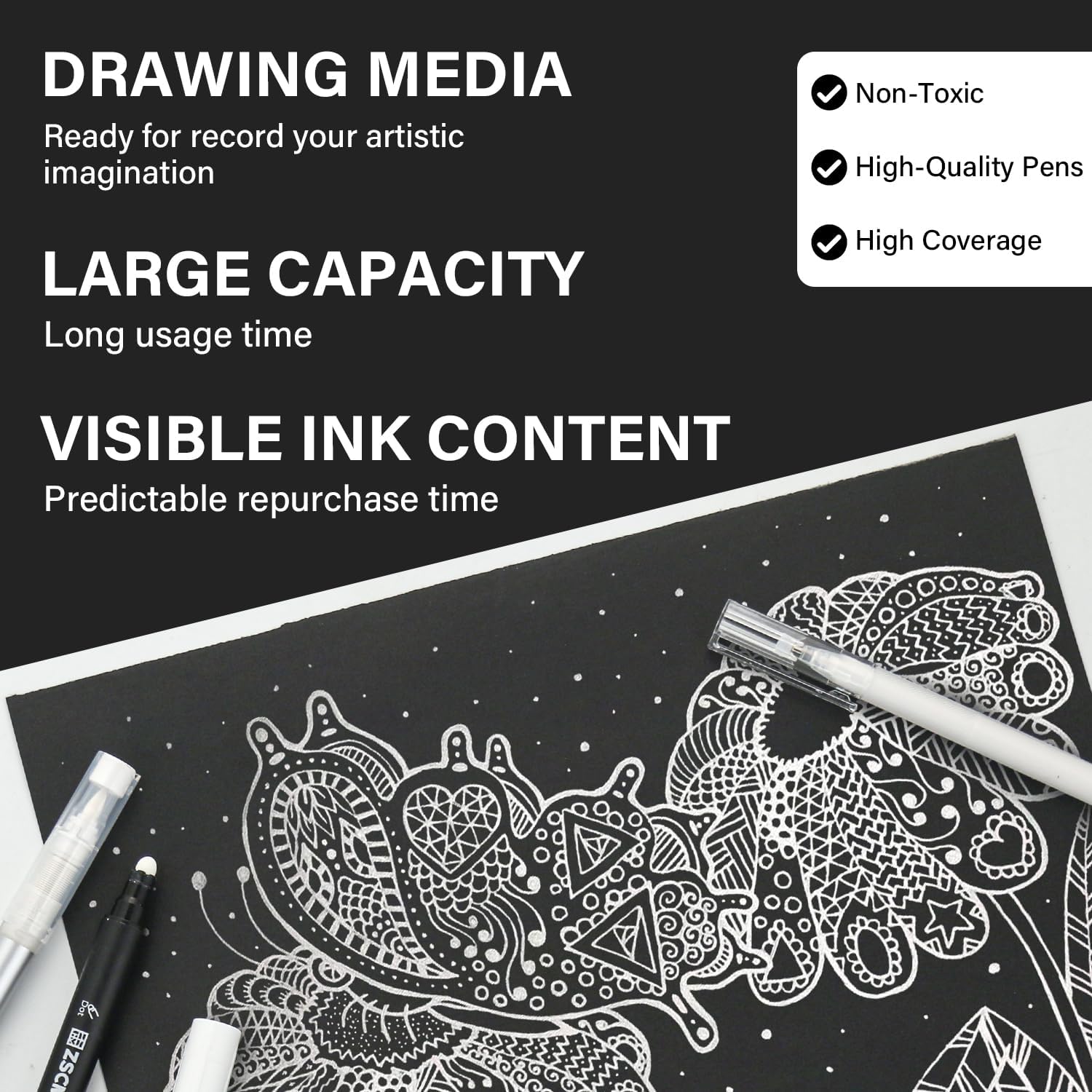 5 Pack White Acrylic Ink Pens for Drawing, Fine Point White Gel Pens, Opaque Acrylic Markers for Black Paper Drawing, Sketching, Illustration, Card Making