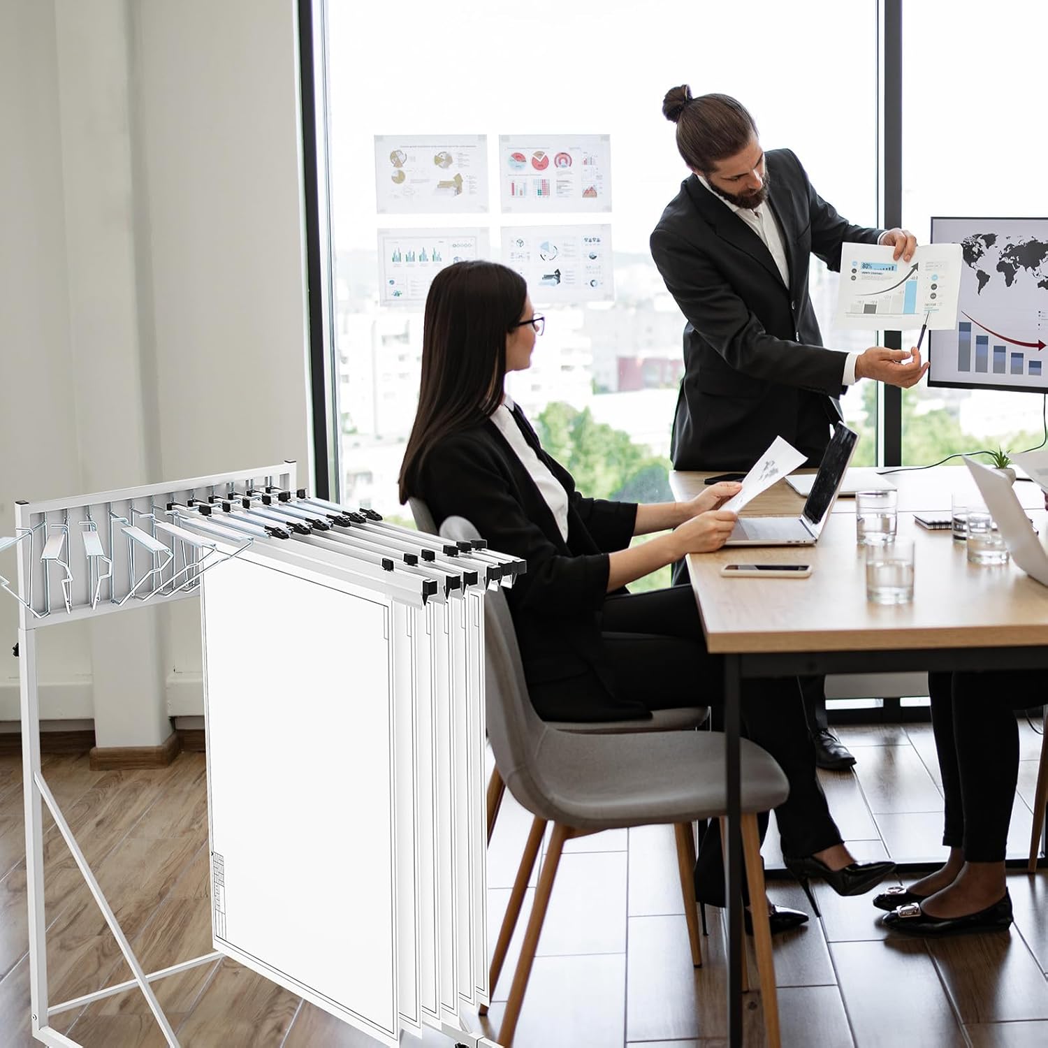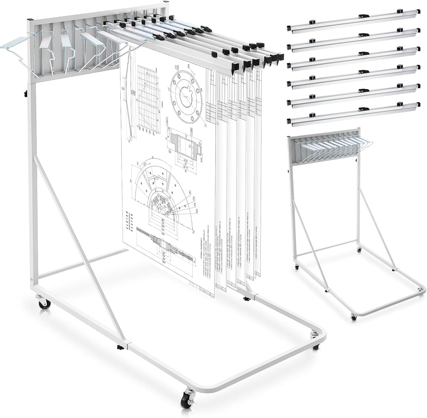 - High Capacity: the blueprint storage rack has been designed for high load capacity; Each hanging clamp can hold up to 100 drawings, this allows for systematic organization of numerous documents; Turn your disordered workplace into a streamlined, well organized space. blue print storage organizer is not limited to storing and displaying blueprints, it can also be used as a poster display stand, architectural drawing storage, map storage and other uses you need