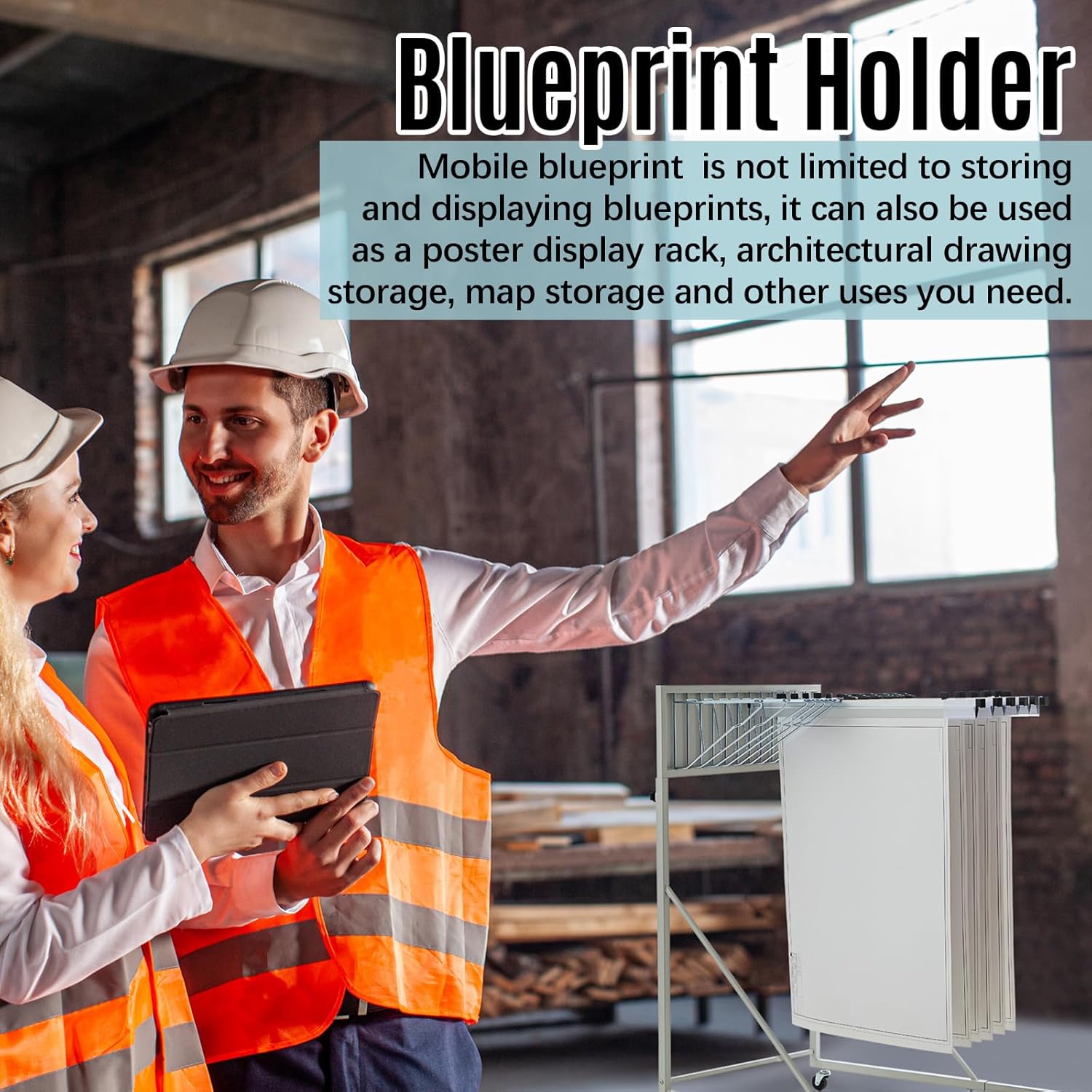 - Package Includes: The package includes 1 set of blueprint holder, equipped with 1 iron frame and 6 poster hanging strips; With rollers, it allows you to easily view and access blueprints, plans, maps and other large-format documents; The package also includes detailed instructions for your convenience. This set is the complete mobile blueprint storage rack you need to organize your workspace