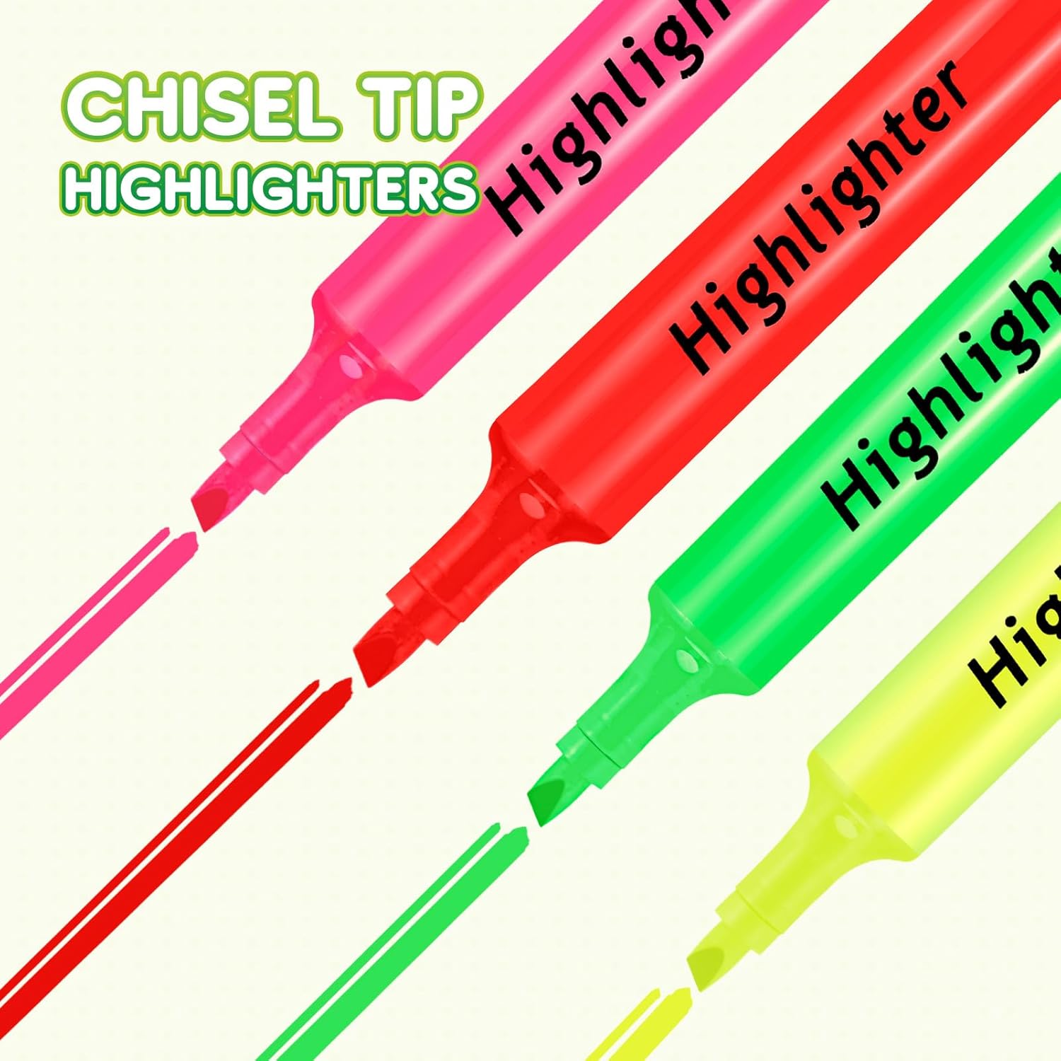 - Thoughtful Design Details: the highlighter come with a quality chisel tip, providing wide highlighting and thin underlining, which you can create thick and thin lines; And the fitting cap protects the nib when not in use