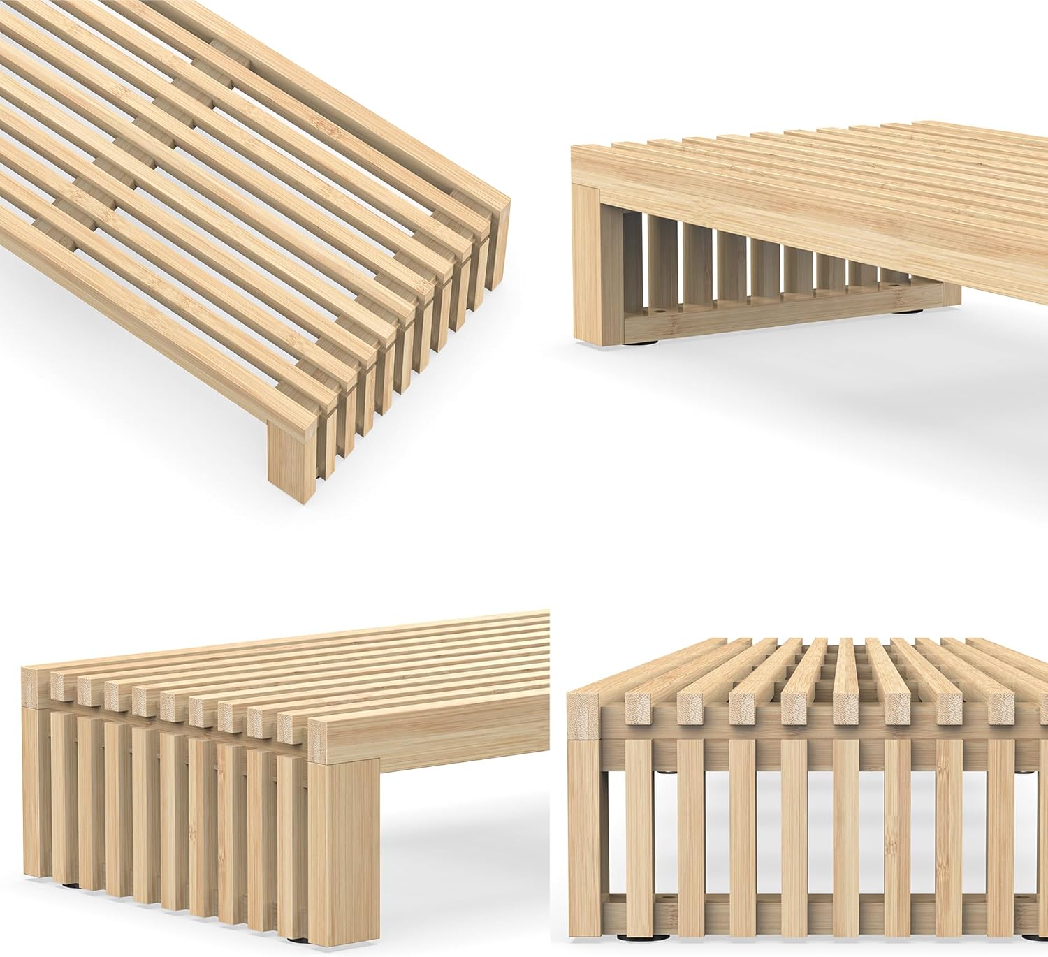 - 【Sustainable Bamboo Craftmanship】 Crafted from 100% bamboo with grille-inspired details, the monitor stand ensures a harmonious blend of natural elegance and modern design.