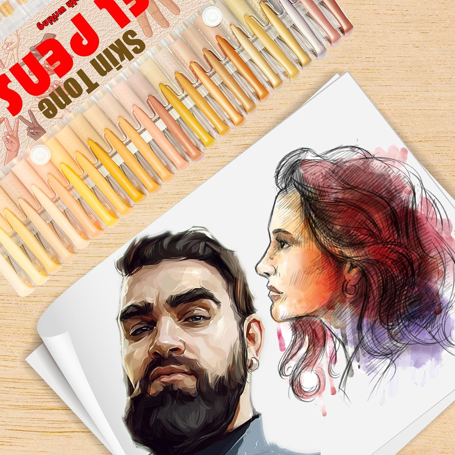 90 Pack Skin Tone Gel Pens, 30 Skin Tone Gel Pens with 60 Refills,40% More Ink Colored Gel Pens for Adults Coloring Books Drawing Doodling Scrapbook Journaling