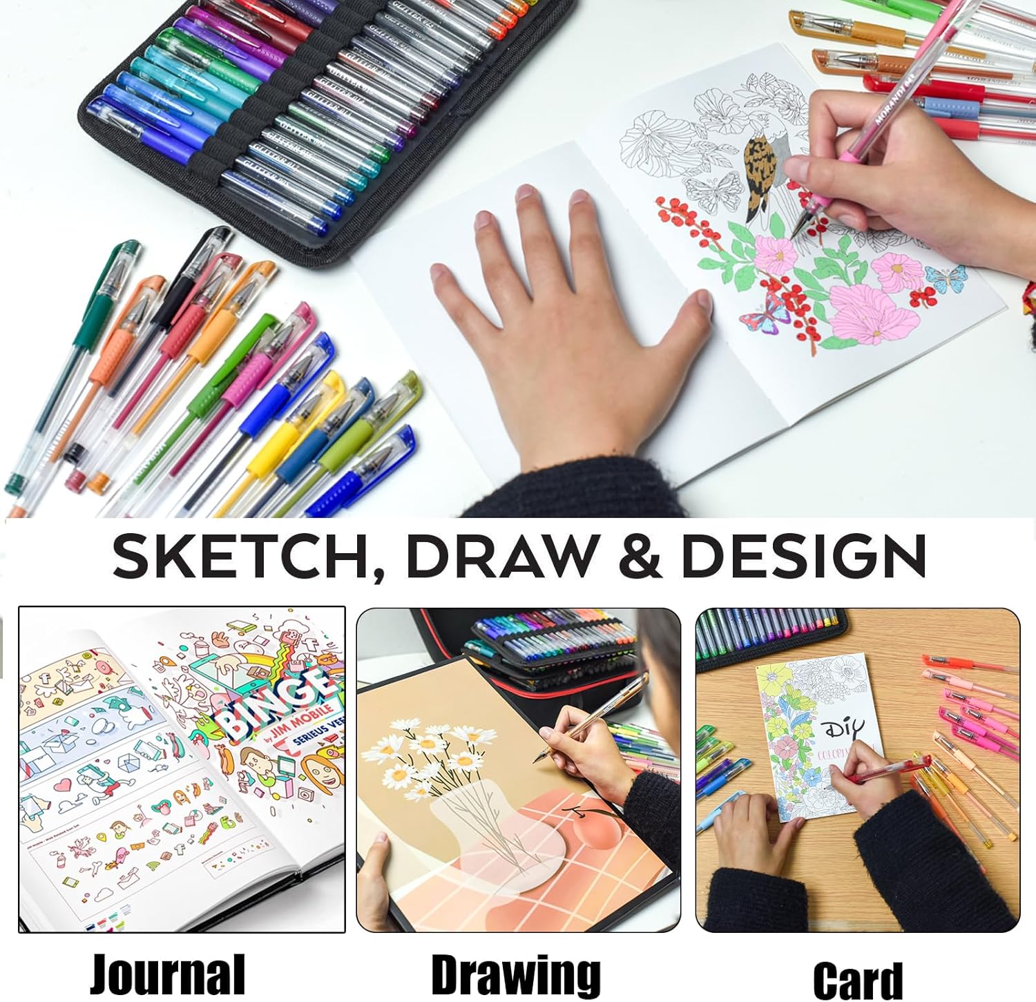 - LONG LASTING:Our glitter gel pens come with 40% more ink, can coloring more pages than before. Do not need find refills when doing artworks. Our colorful pens are easy to hold and comfortable for note taking, drawing, crafting, doodling and journaling