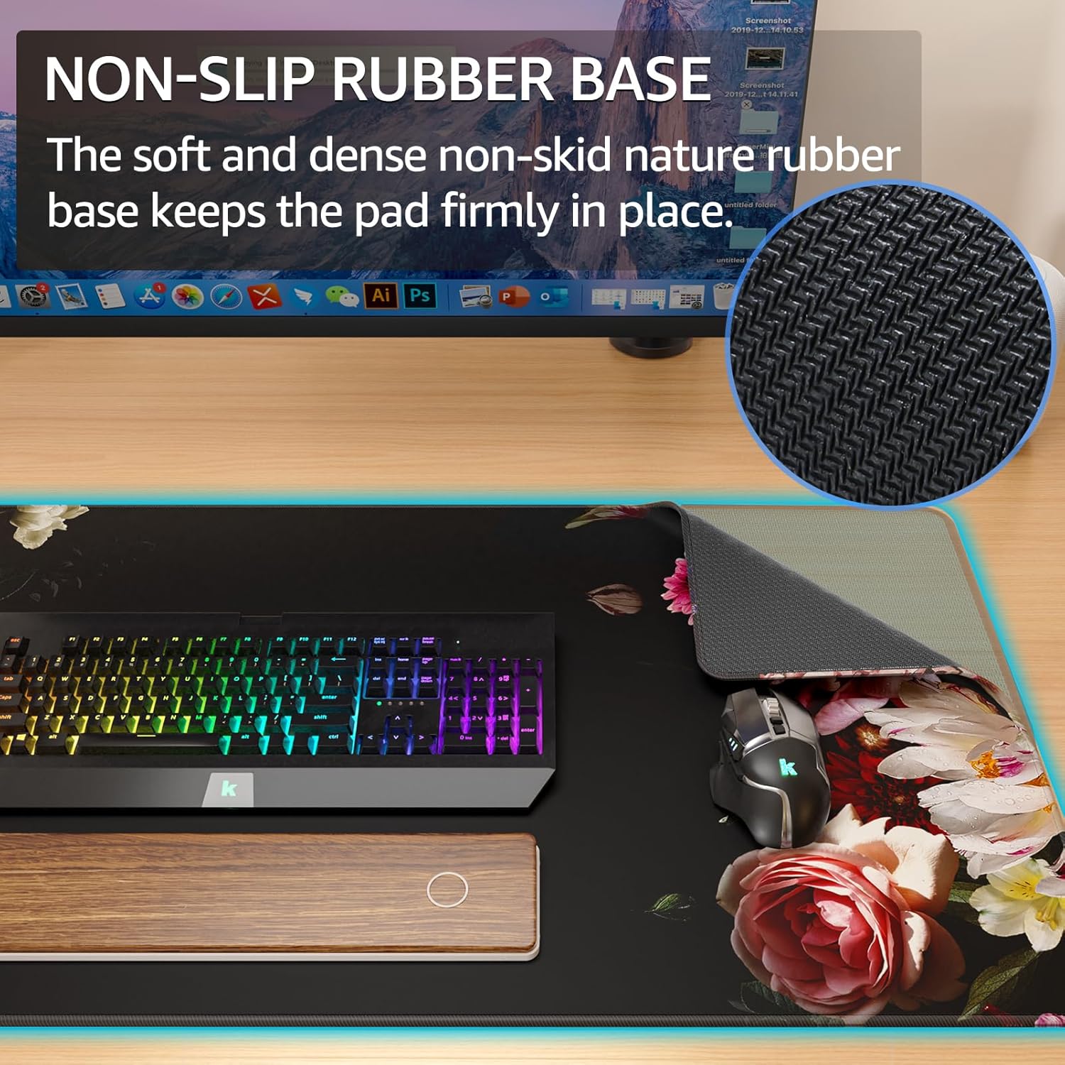 KTRIO Large Gaming Mouse Pad with Stitched Edges, Extended Mousepad with Superior Micro-Weave Cloth, Non-Slip Base, Water Resist Keyboard Pad for Gamer, Office & Home, 31.5x15.7in, Peony Flower