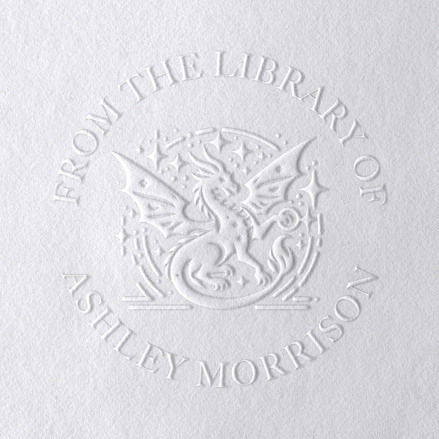Dragon Book Embosser, Custom Round Library Book Embosser, Fantasty Fiction Dragon Ex Libris Embosser, Gift for Book Lover | Black or Pink Embosser (Dragon #2)