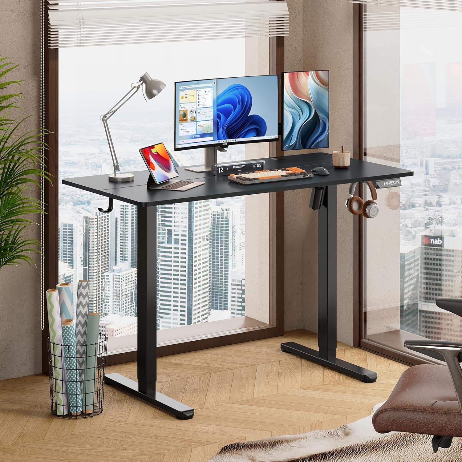 DEVAISE 48 Inch Electric Standing Desk, 3 Adjustable Height Stand up Desk for Home Office, Ergonomic Sit to Stand Desk with LED Touchscreen, Headphone Hook, 3 Memory Preset Computer Desk (Black)