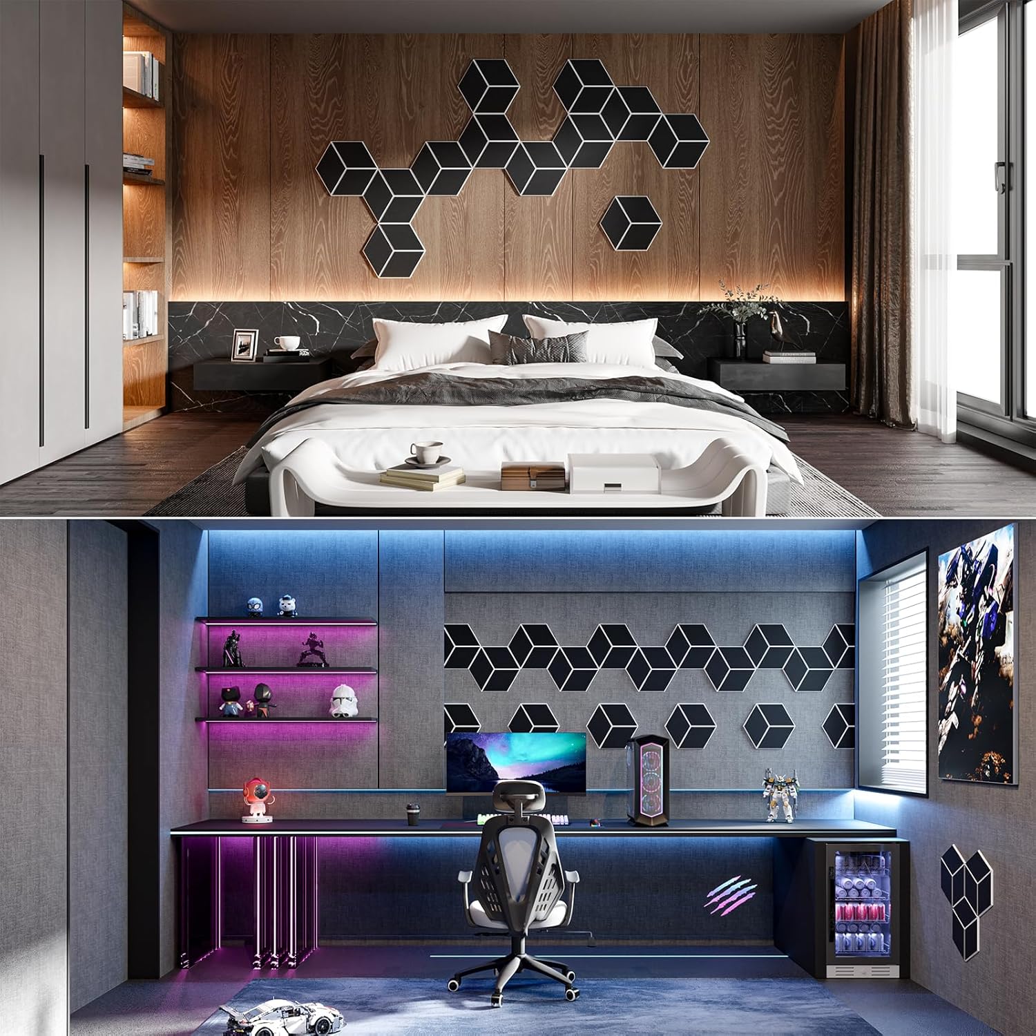 - Stylish and Versatile Decoration: Introducing our hexagonal soundproof wall panels featuring a sleek beveled edge design. Embrace our latest 3D Visual Design innovation, enhancing your space with contemporary flair. These panels can be creatively arranged as artistic accents in any room or apartment. Lightweight and available in a variety of colors to harmonize with any decor.